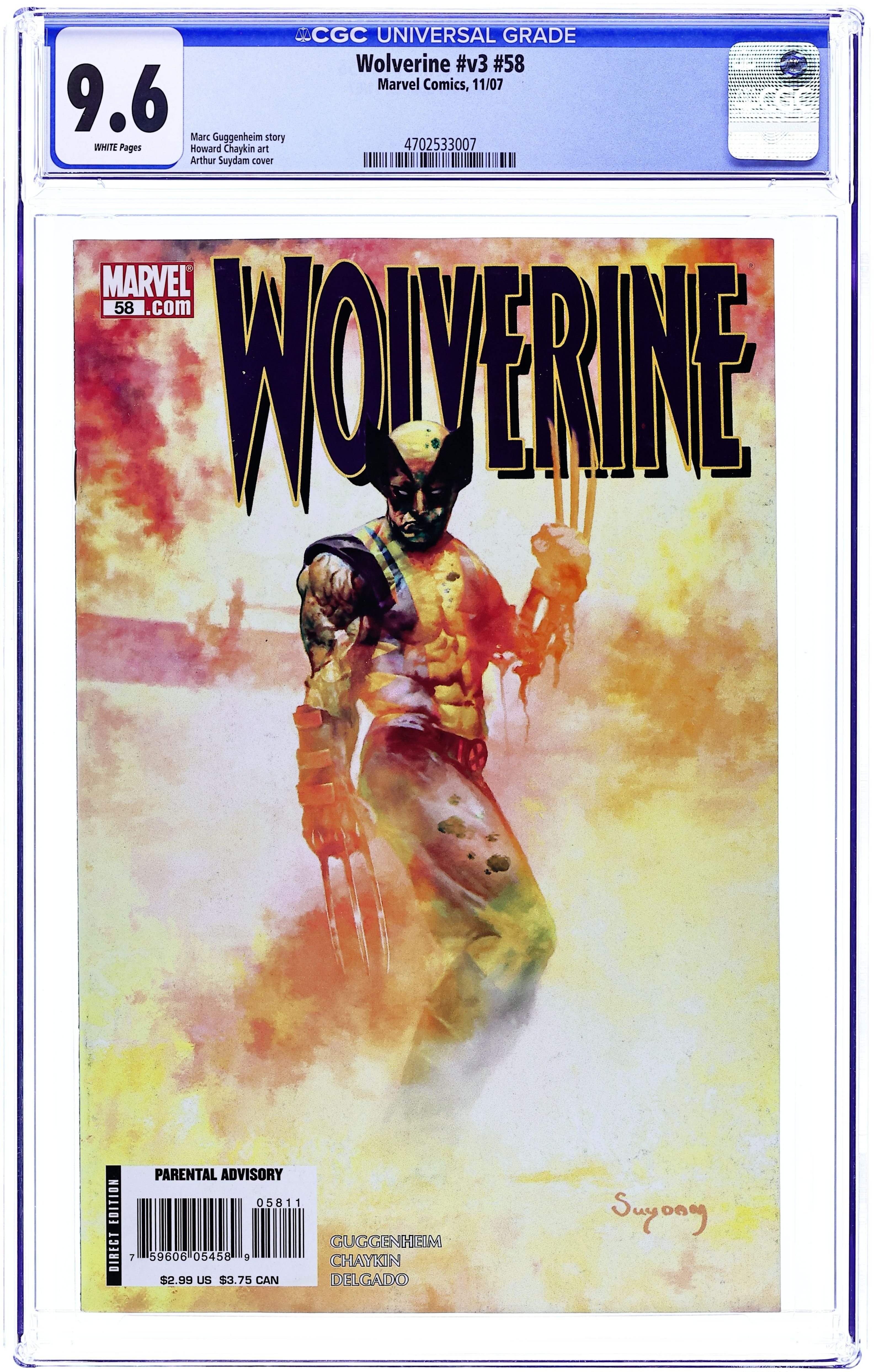 Written by MARC GUGGENHEIM Art by HOWARD CHAYKIN Cover by ARTHUR SUYDAM 'LOGAN DIES,' Part 3 Wolverine's dead! And if he's going to have any chance at life, he's going to have to kill... Wolverine?! The battle of Logan's life -- literally -- is brought to you by the critically-acclaimed team of Marc Guggenheim and Howard Chaykin. Cover price $2.99.