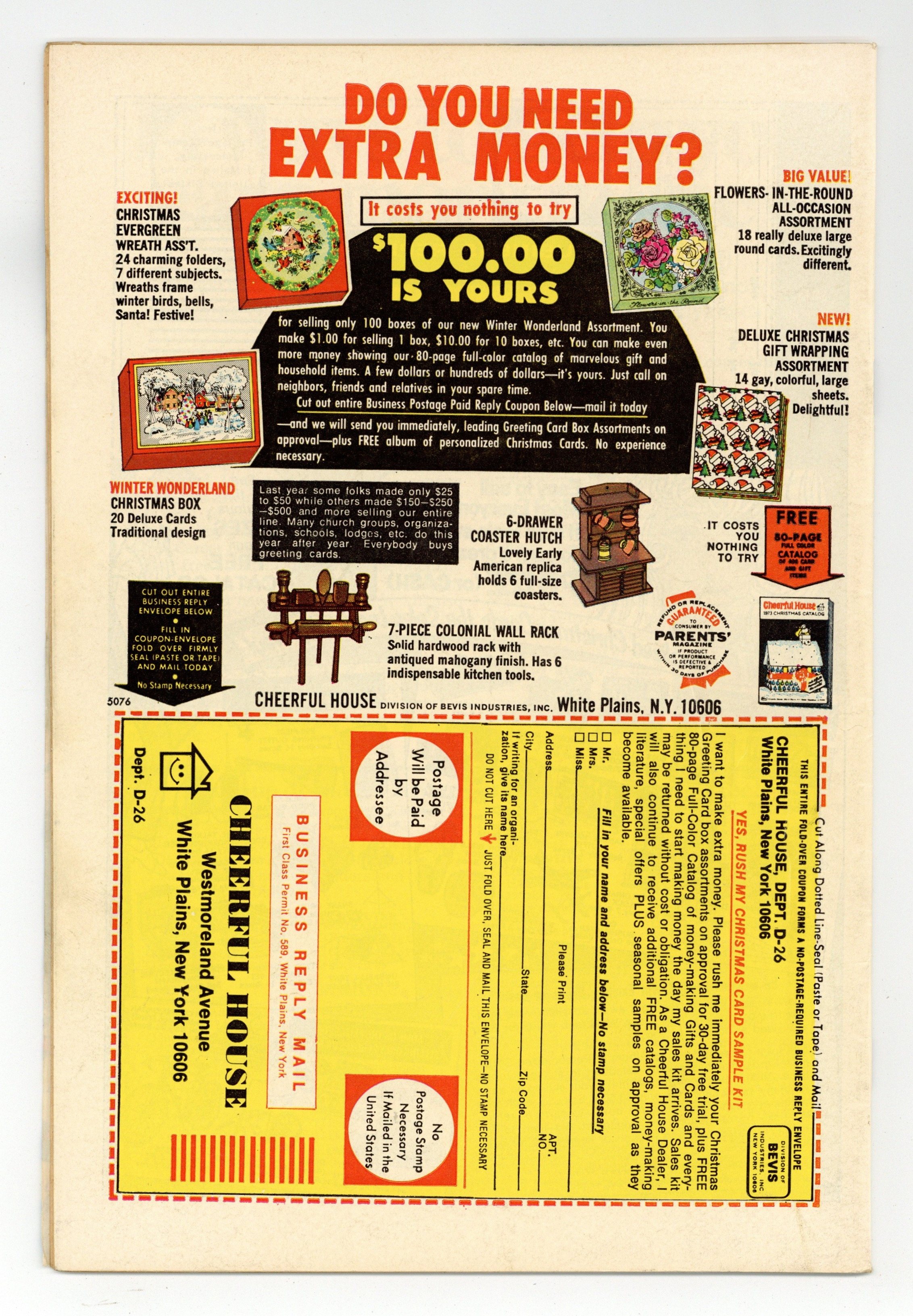 Starts Feb 9 Cover pencils by Stan Goldberg, inks by Jon D'Agostino. "Come To the Fair," script by Frank Doyle, pencils by Harry Lucey, inks by Chic Stone; When a carnival barker announces that the Riverdale bankers will be coming to judge the beauty contest at the fair, Archie and Jughead suspect that it may be a plot to empty out the bank so it can be robbed; Betty, Veronica and Reggie think they've seen too many movies and TV shows. "Archie's Restaurant," script by Frank Doyle, pencils by Harry Lucey, inks by Chic Stone; Archie and his friends go to the grand opening of the first Archie's Restaurant in Joliet, Illinois, where they enlist the help of the Mayor to keep Jughead out of the way. "Heavy Problem" starring Li'l Jinx, script and art by Joe Edwards. "The Message," pencils by Harry Lucey, inks by Chic Stone; Archie gets a lecture from his dad after saying he's "too tired" to clean his room. 36 pgs., full color. Cover price $0.20.