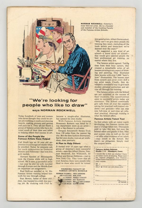 Starts Feb 2 Cover pencils by John Romita and Steve Ditko, inks by Mike Esposito and Steve Ditko. Spidey faces the Avengers and the Hulk in a new 21-page story, "To Become an Avenger!", script by Stan Lee, layouts by John Romita Sr., pencils by Don Heck, inks by Mickey Demeo; The Avengers decide to ask Spider-Man to join the team but first he has to complete a test to prove himself; Reprinted in Marvel Tales # 181. The test is to capture the Hulk. Turning Point, script by Stan Lee, art by Steve Ditko; Betty's brother has gotten himself into trouble with gambling debts and Betty is forced to help in Doc Ock's plot to break Blackie Gaxton out of prison to keep her sibling alive; Spider-Man interrupts the escape and Blackie shoots Bennett during the conflict; reprinted from Amazing Spider-Man 11. Unmasked by Dr. Octopus, script by Stan Lee, art by Steve Ditko; Peter has the 24 hour flu when Doc Ock captures Betty Brant in hopes of luring Spider-Man into battle; Ock beats the sick web-head and unmasks him, but everyone thinks it is just Peter trying to be brave by impersonating Spidey; reprinted from Amazing Spider-Man 12. 76 pgs., full color. Cover price $0.25.