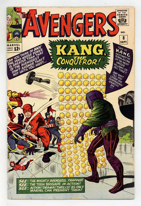 Ends Jan 13 7:54 PM CST Bid History 14 bids Current Bid $1,660 Your Secret Max Bid If you'd like to bid, please log in or register. Cover pencils by Jack Kirby, inks by Dick Ayers. Kang, The Conqueror!, script by Stan Lee, pencils by Jack Kirby, inks by Vince Colletta cover; Kang appears and demands to be made ruler of the Earth; The Avengers attempt to stop him, but it comes down to Wasp and the Teen Brigade to slow Kang long enough for the rest of the Avengers to free themselves and put an end to Kang's threat. Roster: Captain America, Thor, Iron Man, Wasp, Giant-Man, and Rick Jones. First appearance of Kang. 36 pgs. $0.12. Cover price $0.12.
