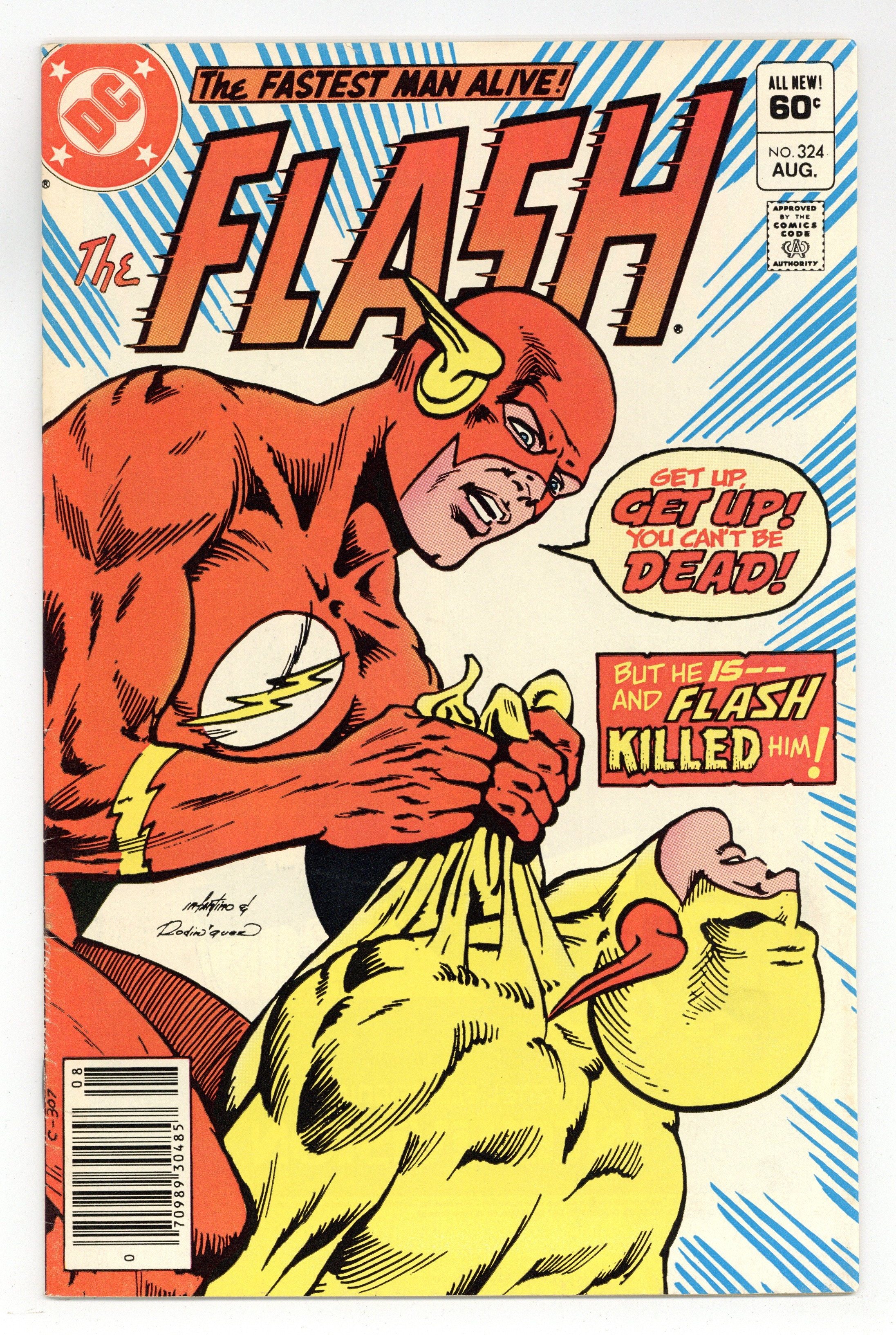 Ends Apr 16 8:12 PM CST Bid History 3 bids Current Bid $12 Your Secret Max Bid If you'd like to bid, please log in or register. Direct Edition. Giant-sized Final Issue. Cover pencils by Carmine Infantino, inks by Klaus Janson. Flash Flees, script by Cary Bates, pencils by Carmine Infantino, inks by Frank McLaughlin; This last issue of The Flash finds the titular character and his Rogues Gallery teaming up to battle Reverse-Flash in order to correct the time line; Flash reunites with his beloved Iris in the 30th century and finds peace at last. The Flash's Final Fate is in Crisis on Infinite Earths #8. Nathaniel Dusk ad. The Outsiders ad. Super Powers VHS ad. DC Challenge ad. A Life in the Funnybooks guest editorial by Roy Thomas. Super Powers action figures ad. 52 Pages, Full Color. Cover price $1.25.