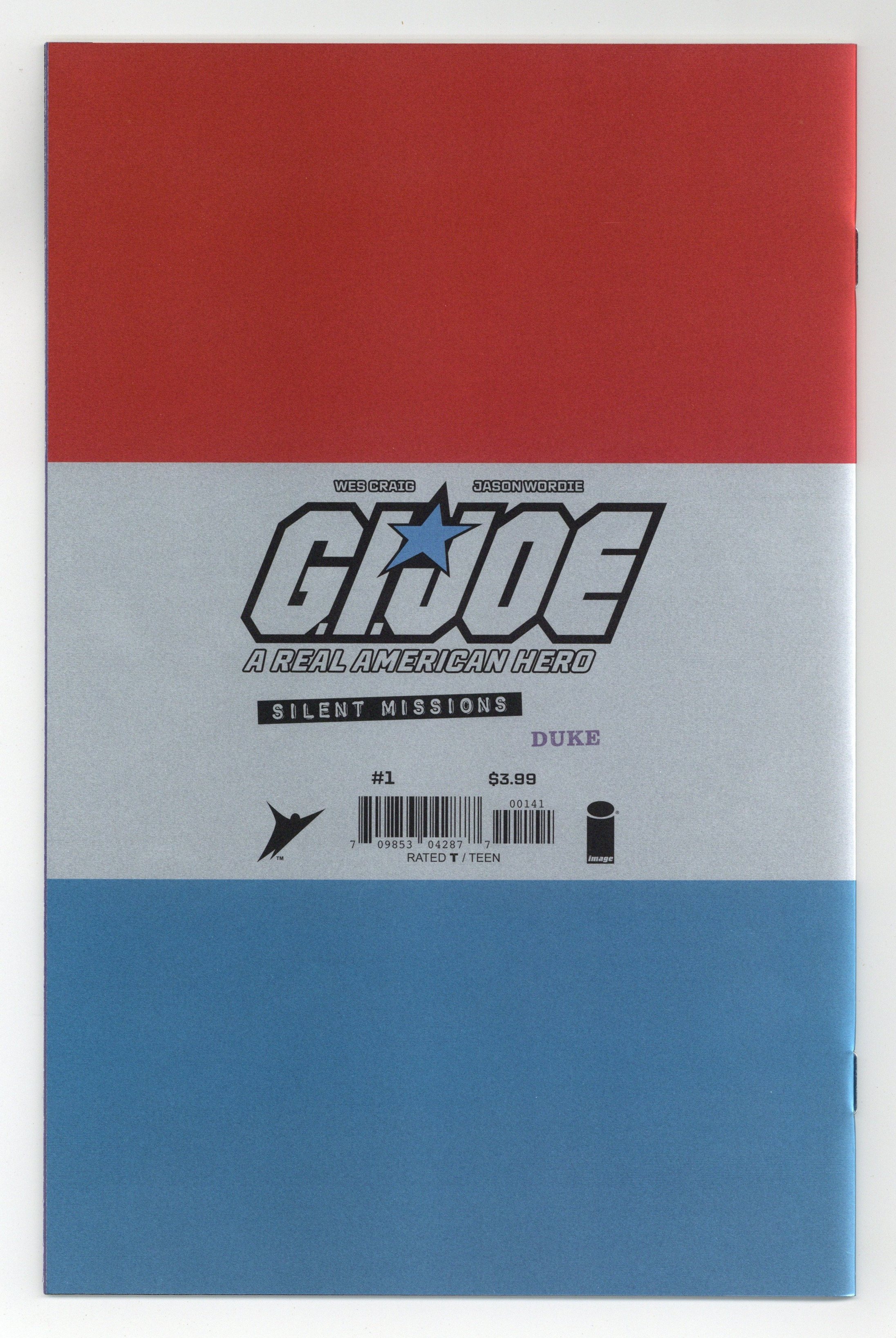Starts Feb 9 Limited 1 for 25 Retailer Incentive Variant Cover. Written by Wes Craig. Art by Wes Craig, Jason Wordie. Cover by Jorge Fornes. **SUPERSTAR CREATORS PRESENT UNFORGETTABLE ALL NEW G.I. JOE SILENT MISSIONS ** The face of comic books changed forever when G.I. JOE: A REAL AMERICAN HERO #21 introduced fans to the Silent Interlude, an action-packed story with NO DIALOGUE. Now, in a standalone silent issue from WES CRAIG (KAYA, DEADLY CLASS_), _Duke treks through Cobra-infested terrain to find his target—a traitor whos joined the enemy. Can Duke do the unthinkable to complete his mission? 28 Pages, full color. Rated T Cover price $3.99.
