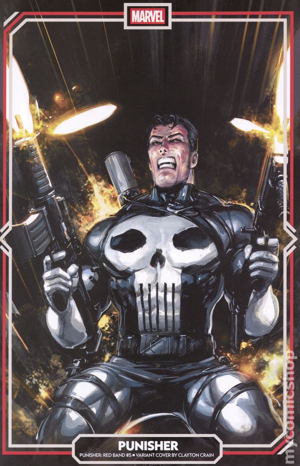 Limited 1 for 50 Retailer Incentive Variant Cover. (W) Benjamin Percy (A) Julius Ohta (CA) Clayton Crain Frank Castle's return to the Marvel Universe is cemented at last, as virtuosos of violence BENJAMIN PERCY and JULIUS OHTA's symphony of slaughter reaches its killer crescendo! HOW WAS FRANK PLUCKED FROM WEIRDWORLD?! WHY?! AND WHAT TWISTS AND TURNS ARE YET TO COME IN THIS SENSES-SHATTERING STORY?! NOTE: All copies of this variant were initially issued in a polybag, which may or may not be present on future listings. Cover price $4.99.