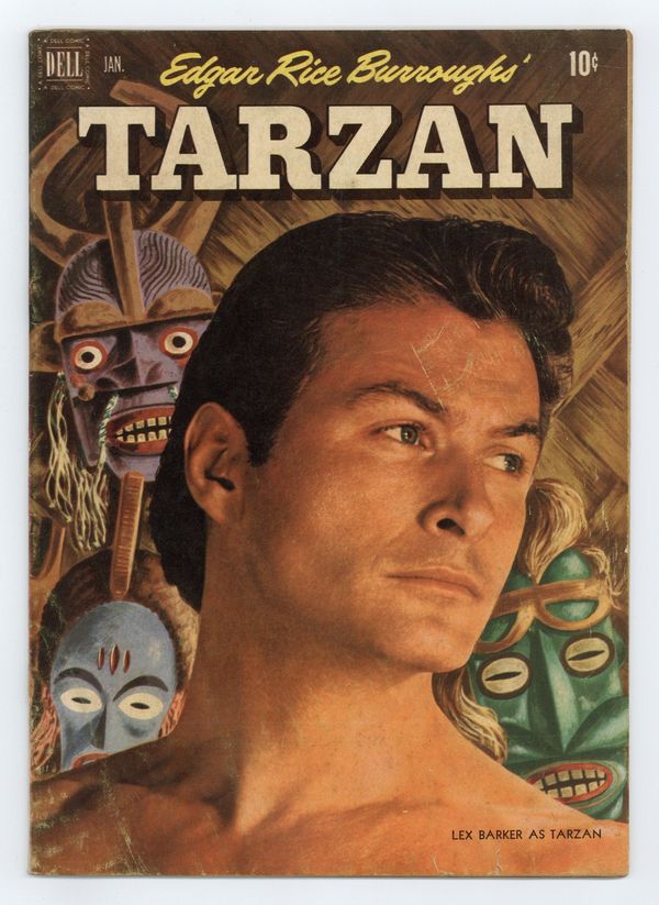 Published Jan 1952 by Dell/Gold Key.$26.00Three stories are included in this issue: "Tarzan and the Wickedness of Gogulu" (Tarzan battles a wild buffalo); "Brothers of the Spear" (Queen Liloma wants Dan-el to marry her); and "Journey's Beginning" (a text piece). Script by Gaylord DuBois, art by Jesse Marsh. Lex Barker photo cover. 36 pages, full color. Cover price $0.10.