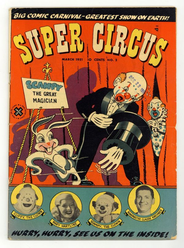 During the 1940s, military hero Don Winslow was the star of a comic strip, a movie serial and a popular radio show in addition to this Fawcett comic. In a three-part sci-fi story, Don and Red are assigned to test-fly the X-36, a plane designed to catch flying saucers. But the aliens capture the X-36 with Don and Red aboard, transporting it to the planet Venus. They must bargain with the Venusian leader, the Wizard of Oz-like Zimm, for Earth's survival. Tugboat Tucker; The Great Solar Mystery; Heroes of the Lawrence; Peril on Venus; Shipwreck and Seaweed: Daze Without End; Dangerous Return; Muscle Hedd. 32 pages, Full Color. Cover price $0.10.