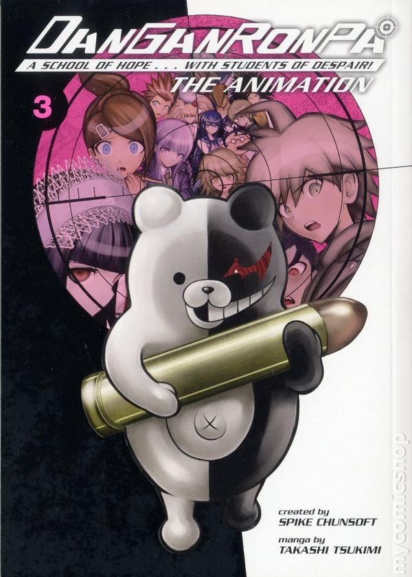 Volume 3 - Reprint. Story and art by Takashi Tsukimi. The life-or-death courtroom game continues at Hope's Peak Academy as Makoto and Kyoko work together to try to prove Yasuhiro's innocence and convict Celestia in the latest round of class trials! And Makoto has learned in his investigations that one of his fellow students is being forced by Monokuma to spy on them. Should he reveal this secret to the others-or wait for the spy to make what could be a very drastic move? Softcover, 192 pages, full color. Cover price $12.99.