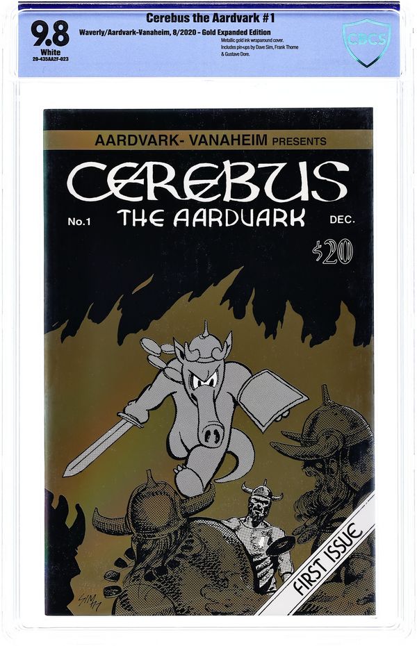 The Waverly Press, in collaboration with Aardvark-Vanaheim, present this groundbreaking series, from the moment where it all began, with stunning, remastered art, available in two editions. The STANDARD 24 page book reproduces the original 1977 edition as Dave Sim intended. The 48 page EXPANDED edition features the original story with an additional 24 pages of art and rarities from the Cerebus Archive, with all new captions by Dave Sim. The 48 page expanded edition comes in two cover variants, the GOLD cover, and PLATINUM signed & numbered cover. The Waverly Press editions were produced in very limited quantities and will not be reprinted or widely distributed.