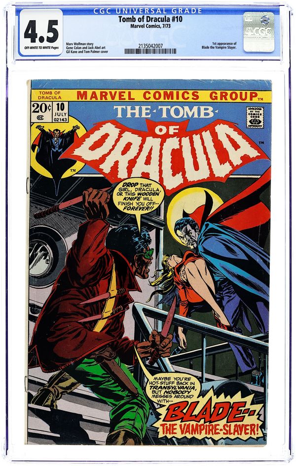 "His Name is Blade!" Written by Marv Wolfman. Art by Gene Colan and Jacki Abel. Half-human, half-vampire, all attitude! His name is Blade and he's here to destroy Dracula once and for all. 32 pages, FC. NOTE: 1st appearance of Blade the Vampire Slayer. Cover price $0.20.