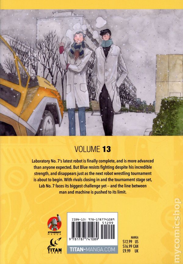 Volume 12 - 1st printing. Based on the Original Idea by Osamu Tezuka. Concept by Masami Yuuki. Art and cover by Tetsuro Kasahara. Translated by Jonathan Clements. In Atom: The Beginning Volume 12, the origins of the iconic Astro Boy myth come to life with new intensity, as readers can enjoy a new side to the franchise that currently has an anime streaming on Amazon Prime Video, Netflix, and Crunchyroll. As Laboratory No. 1, now under Haido's control, showcases its latest marvel, the robot Mu emerges as a formidable contender during a robot wrestling tournament. After a dominant victory over U-ran, Mu's power and prowess are undeniable. Meanwhile, the team from Lab No. 7 shifts their focus from the recent competition to refining their own robot creation, setting the stage for future advancements. Softcover, 5-in. x 7-in., 176 pages, B&W. Cover price $12.99.
