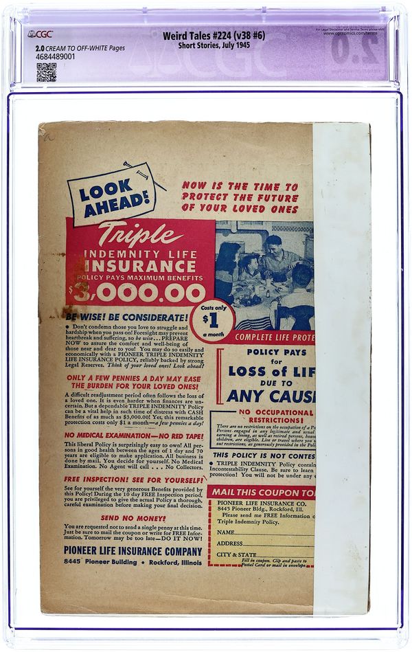 Tags: Anthology / CollectionPublished Jul 1945 by Weird Tales.Weird Tales (1923-1985 Popular Fiction) Pulp 1st Series Vol. 38 #6 CGC 2.0 Restored