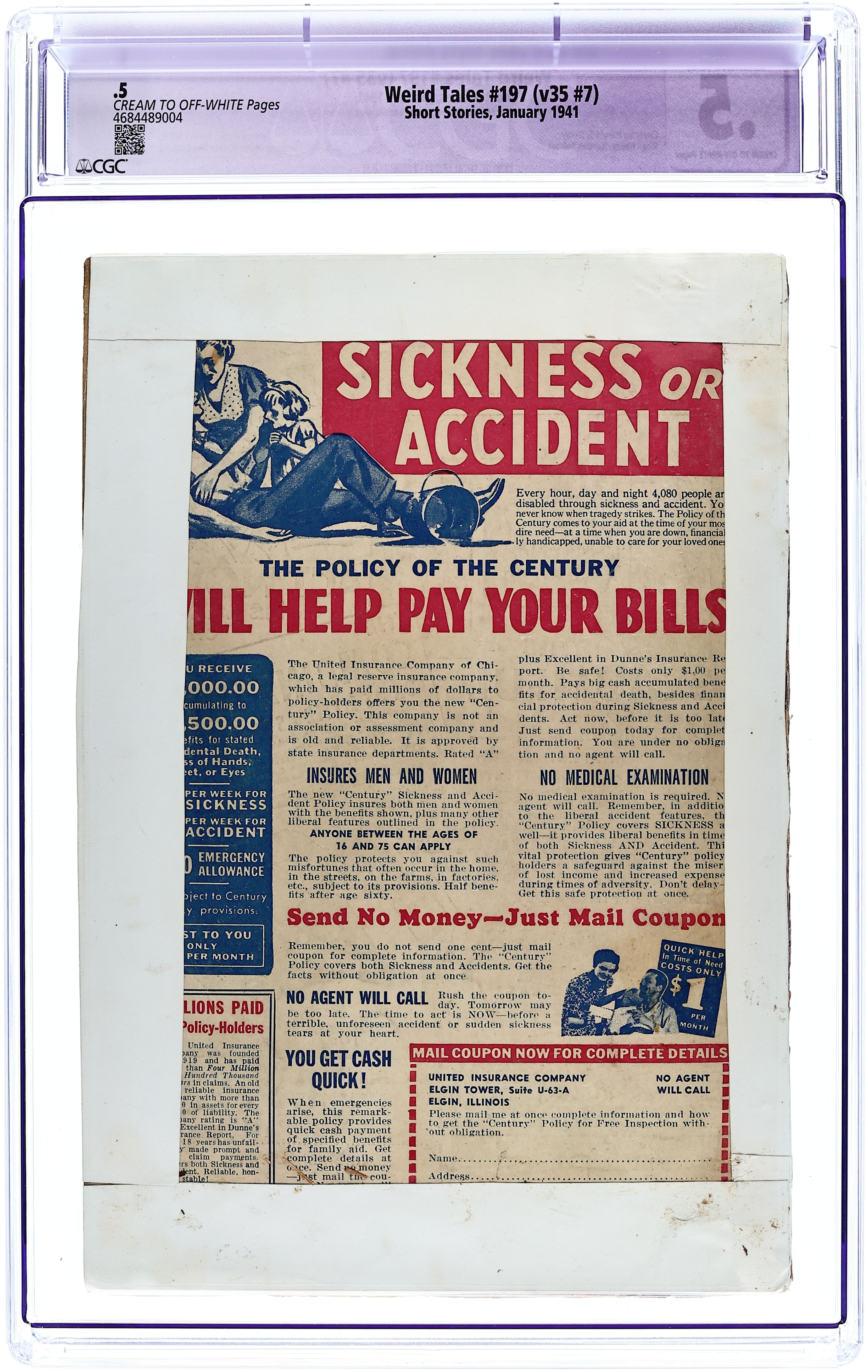 Tags: Anthology / CollectionPublished Jan 1941 by Weird Tales.Weird Tales (1923-1985 Popular Fiction) Pulp 1st Series Vol. 35 #7 CGC 0.5 Restored