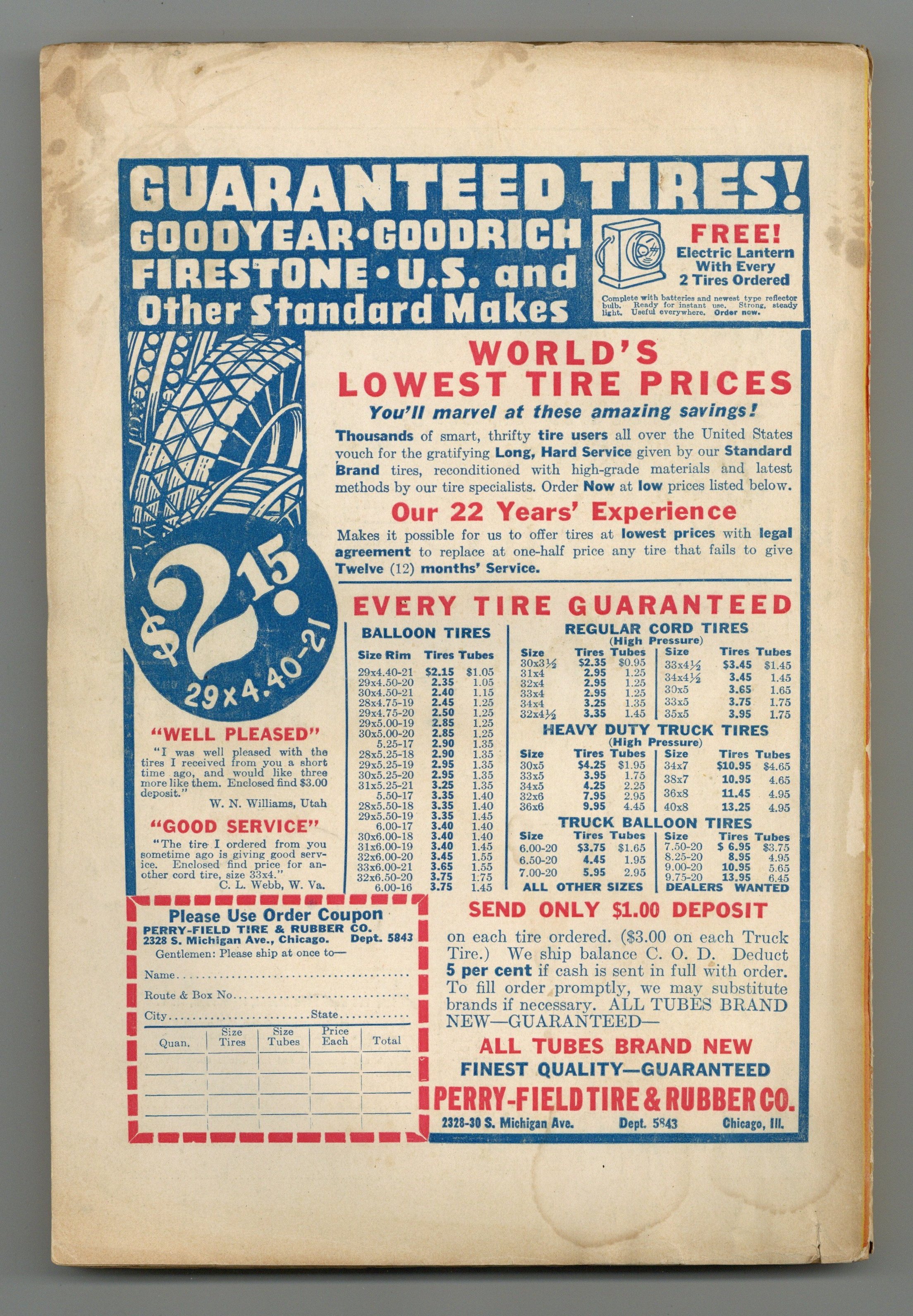 Starts Apr 4 Cover art by Sheldon Moldoff. The Sins of the Father, script by Bill Finger, art by Everett E. Hibbard [as Mart Dellon]; Accompanying Irene on an interview with movie star Delia Day, Alan Scott becomes suspicious spying her talking to hoodlum "Slug" Kafey; Taking action as Green Lantern, Scott discovers that Day is being blackmailed because her father is actually racketeer Al Maloney. After the Red Tornado starring Scribbly and the Red Tornado, script and art by Sheldon Mayer; When the Police learn that the Red Tornado is operating in the neighborhood, they attempt to capture her. Mutt and Jeff strips by Al Smith (as Bud Fisher). Believe It or Not by Robert L. Ripley. Charter Flight to Disaster starring Hop Harrigan, script and art by Jon L. Blummer. Joe's Appointment starring The Atom, script by Bill O'Connor, pencils by Ben Flinton, inks by Leonard Sansone. Rescue on Mars: Part 4--Adventures in the Unknown, script by Carl H. Claudy, art by Stan Aschmeier. The Worthless Stock starring Ben Webster, script and art by Russell Cole [as Edwin Alger]. The Mysterious Murder of the Texas Ranger starring Red, White and Blue, art by William Smith. 68 pgs. $0.10. Cover price $0.10.