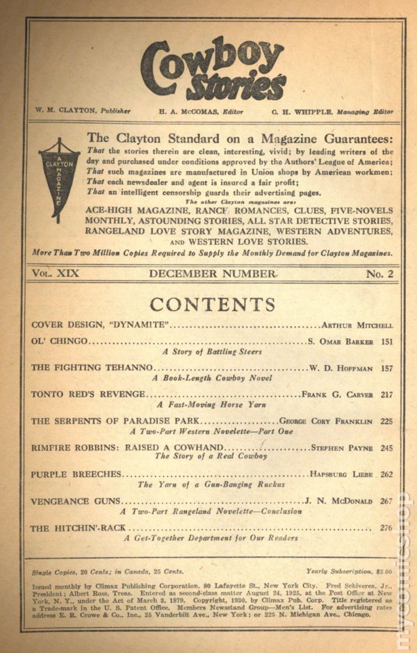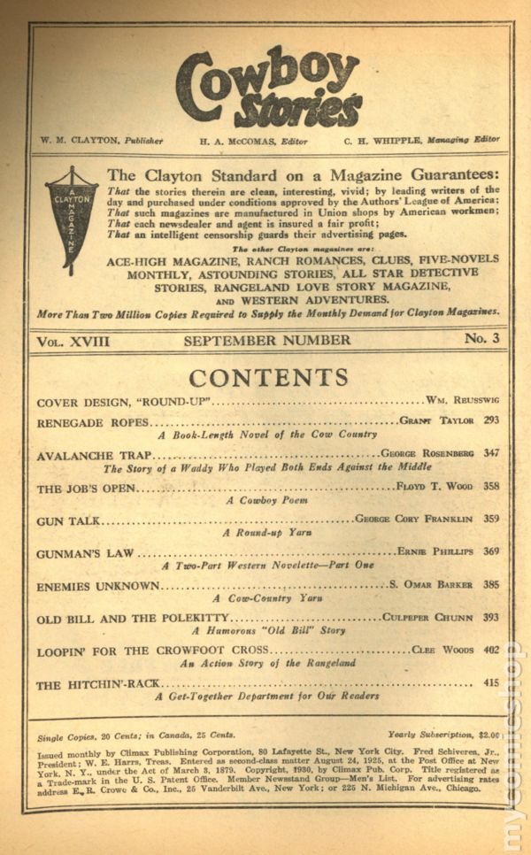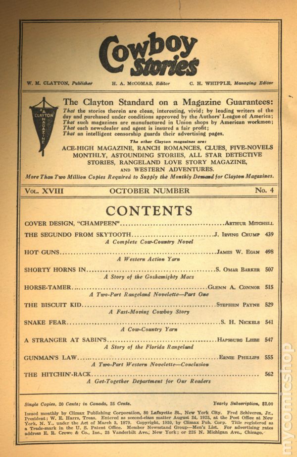 Tags: Pulp AdventurePublished 1925 by Clayton Magazines, Inc..This item is not in stock at MyComicShop. If you use the "Add to want list" tab to add this issue to your want list, we will email you when it becomes available.