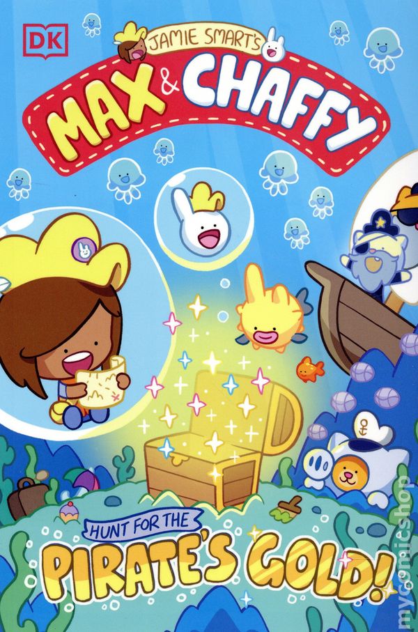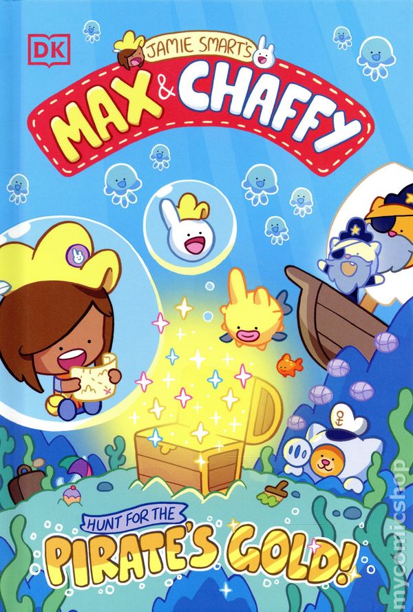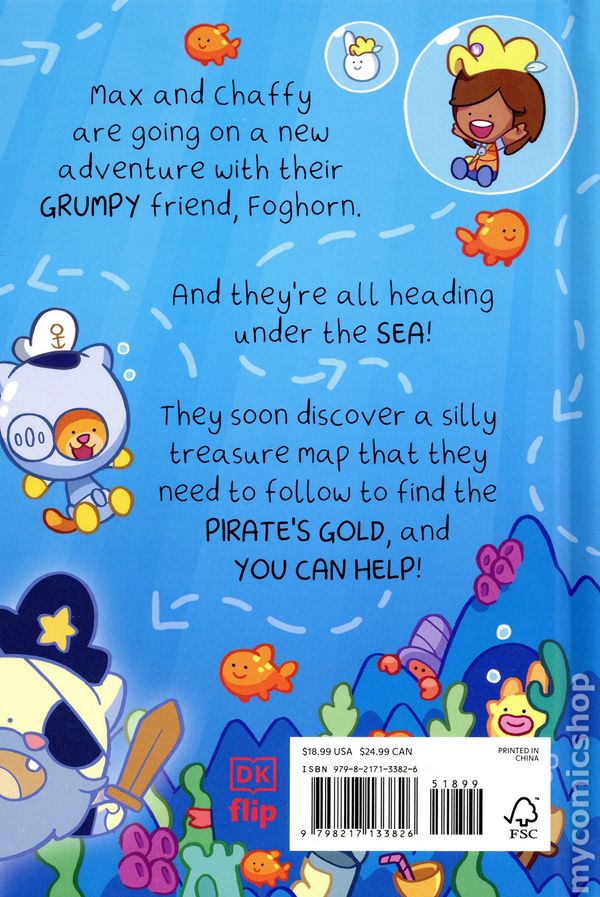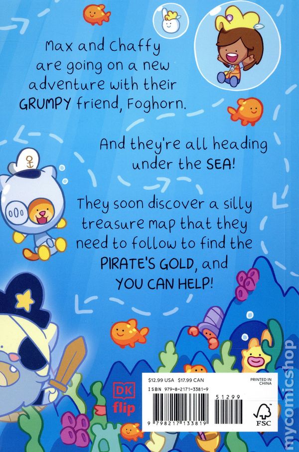 1st printing. Story and art by Jamie Smart. Max and Chaffy are back in another adventure, and this time they're diving below the waves to explore the ocean floor! It's another glorious day on Animal Island, but in the dark depths of the ocean is a map that leads to treasure, just waiting to be found. Who better to find lost things than Max and Chaffy?! Swim through the Coral Reef, traverse the Goldfish Trench, and follow the clues to discover a treasure unlike any other ... From award-winning author Jamie Smart comes another vibrant, highly visual graphic novel about discovering new things, making friends, and returning what's been lost to its rightful owner. The hilarious story is interspersed with engaging search-and-find pages—since Chaffy has a habit of getting lost—as well as items which aren't where they should be! Join Max and Chaffy on their adventure to discover what's been lost, and everything that can be found, on Animal Island. Hardcover, 5 1/2-in. x 8 1/2-in., 128 pages, full color. All Ages Cover price $18.99.