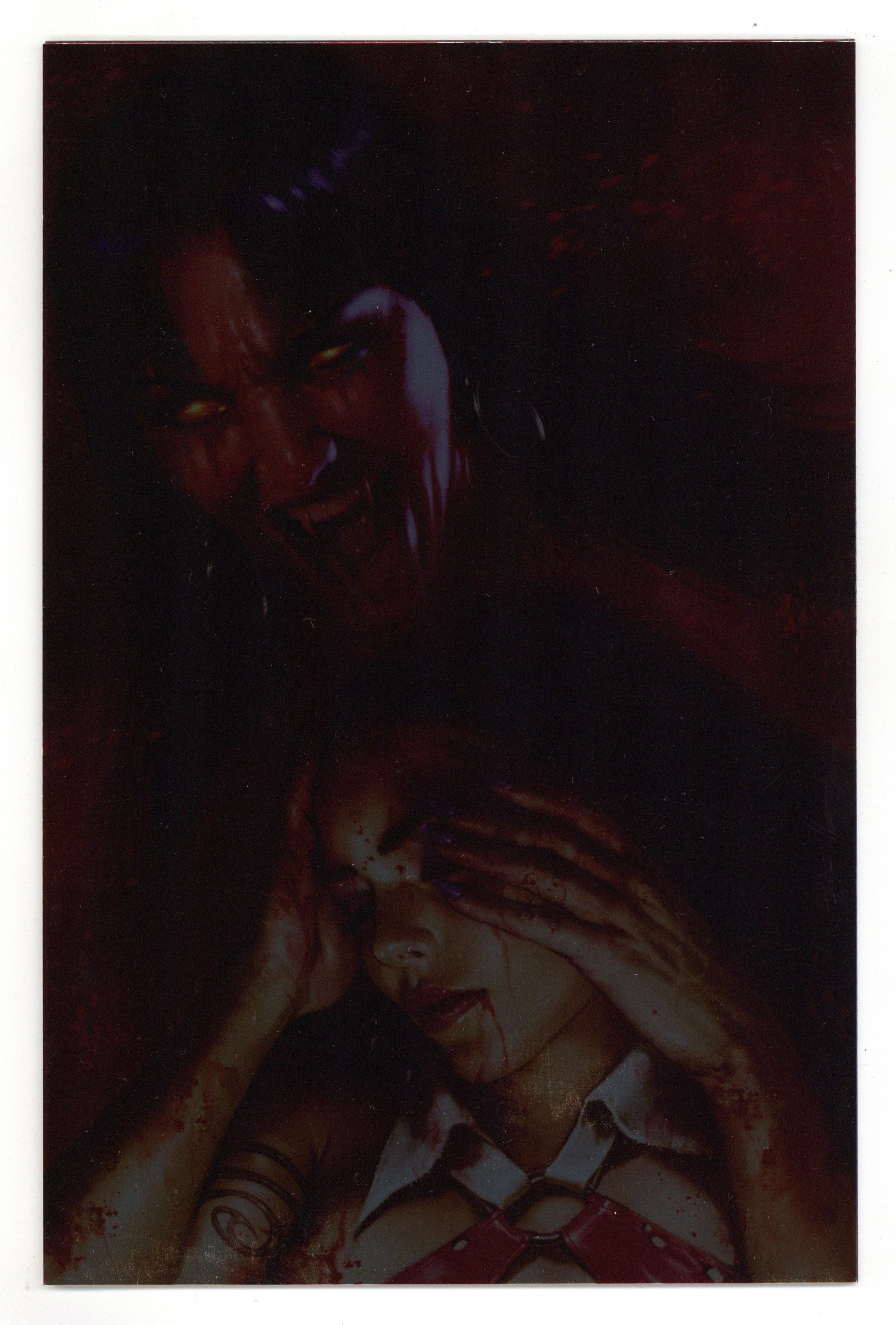 Starts Feb 9 Metal Edition Virgin Cover by Lucio Parrillo - limited to 25 copies. Written by Tom Sniegoski, Jeannine Acheson. Art by Daniel Maine. A new miniseries from the writers of Vampiverse explodes onto comic shelves in June! Lilith, a daughter of Vampirella, now working for the Reality Corp., has been assigned her first mission, investigating an anomaly in one of the many threads of the Fabric where the Vampirella of that world has gone eerily silent. Upon reaching this reality, Lilith discovers a world overrun by the spawn of Chaos and a Vampirella beaten and broken by the forces she has sworn to combat. It is up to Lilith to save this world from a monstrous evil and to restore Vampirella to the warrior of Order she had once been. ALL COVERS CARDSTOCK 32 pages, full color. Rated T+