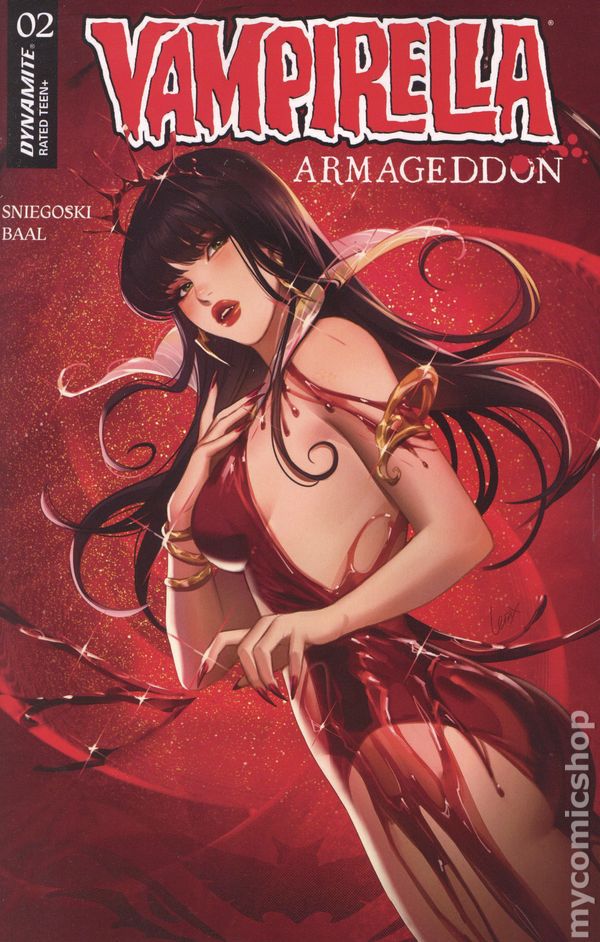 Written by Tom Sniegoski. Art by Kewber Baal. Cover by Francesco Mattina. OUT OF THE FRYING PAN - AND INTO THE HELLFIRE! Things in Sepulcher City go from bad to apocalyptic as the forces of Chaos step up their all-out assault on the Menagerie. As usual, it falls on the supernatural melting pot's lone defender, Vampirella, to try and keep order from descending into anarchy - something that becomes significantly harder after her own descent into the Infernal Realm! The devilishly talented team of writer TOM SNIEGOSKI and artist KEWBER BAAL fan the narrative flames in Vampirella: Armageddon #2 - stoked by superheated covers from FRANCESCO MATTINA, LESLEY 'LEIRIX' LI, JOSEPH MICHAEL LINSNER, and fiery cosplay from LAUREN DELOREAN! 32 pages, full color. Rated T+ Cover price $4.99.