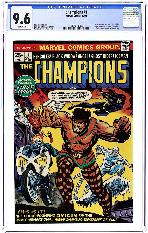 "The World Still needs the Champions!" Part 1 of 3. Story by Tony Isabella. Art by Don Heck and Mike Esposito. Cover by Gil Kane and Dan Adkins. Courage made them heroes - Fate made them Champions! Can a former super-spy, two mutants, a demi-god, and a demon carry on in the tradition of the mighty Avengers and Fantastic Four? Black Widow, Ice Man, Angel, Hercules, and Ghost Rider must unite to defend the Olympic goddess, Venus, from the evil machinations of Pluto, Lord of the Underworld, Ares, God of War, and Hyppolyta, Queen of the Amazons. Cover price $0.25.