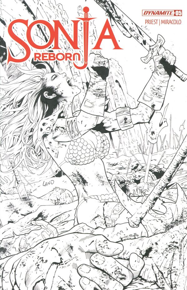Limited 1 for 15 Retailer Incentive Variant Cover. (W) Christopher Priest (A) Alessandro Miracolo (CA) Greg Land Convinced she is either dreaming, hallucinating, or possibly dead, the recently reconstituted Red Sonja (formerly Maggie Sutherland, late of the UK) decides that her best shot at escaping her apparent nightmare is to simply permit the worst to happen. This places her young squire and ersatz teacher-slash-tour-guide Faolán at great risk, as it falls to him to wake Sonja up to the fact this is really happening before she succeeds at getting both of them killed! Master storyteller CHRISTOPHER PRIEST and acclaimed artist ALESSANDRO MIRACOLO turn up the heat on their all-new She-Devil With a Sword in Sonja Reborn #2 stoked by combustible covers from STJEPAN SEJIC, STUART SAYGER, CHAD HARDIN, GREG LAND, and cosplay by ANI-MIA! 32 pages, full color, rated teen. Cover price $4.99.