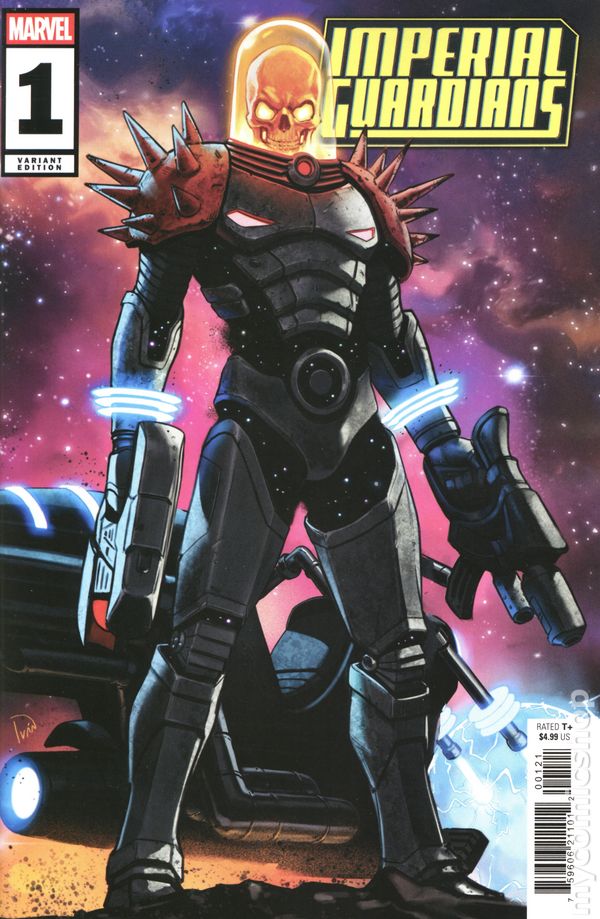 (W) Dan Abnett (A) Marcelo Ferreira (CA) Netho Diaz Gamora, Captain Marvel, Amadeus Cho, Darkhawk, Cosmic Ghost Rider! Five unlikely operatives recruited by Maximus of the Inhumans. Their mission? Protect the delicate balance of new Galactic Union by ANY means necessary…and failure is NOT an option. Expendable, deniable and disavowed, they are the Imperial Guardians. But can they do Maximus' dirty work and keep their consciences clean? Why has a Kree Grand Admiral gone rogue and attacked Hala? What's going on with Darkhawk's mind? What deluded fool thought COSMIC GHOST RIDER was a team player? And, most importantly…what kind of game is Maximus REALLY playing? Cover price $4.99.