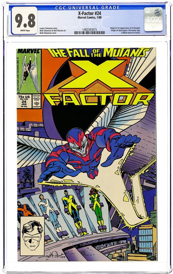 "You Say You Want a Revolution?!" Part 3 of 3. 1st appearance of Archangel (2-page cameo). Story by Louise Simonson. Art by Walter Simonson and Bob Wiacek. The kids have been taken hostage! This is it! No more subterfuge...it's X-Factor vs. Cameron Hodge and the mutant hating Right in a no holds barred melee not everyone will survive. Plus, meet Apocalypse's fourth and most powerful Horseman, Death! Cover price $0.75.