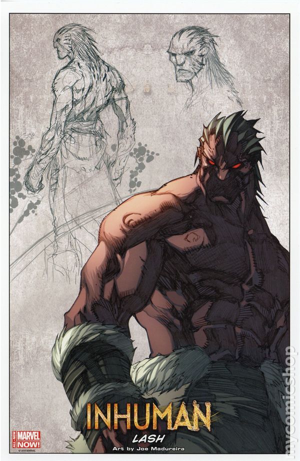 #2: Lash - Art by Joe Madureira. This special art print for the Marvel Now launch of Inhuman, featuring Joe Madureira's sketch work on the Inhuman Lash! Includes 1 print, 6 1/2-in. x 10-in., full color. All Ages