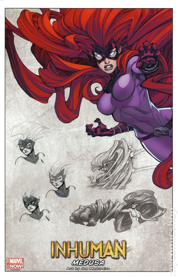 #3: Medusa - Art by Joe Madureira. This special art print celebrates the Marvel Now launch of the Inhuman, featuring Joe Madureira's sketch work on the Inhuman's noble Queen , Medusa! Includes 1 print, 6 1/2-in. x 10-in., full color. All Ages