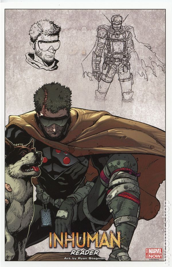 #5: Reader - Art by Ryan Stegman. This special art print celebrates the Marvel Now launch of the Inhuman, featuring Ryan Stegman's sketch work for Reader! Includes 1 print, 6 1/2-in. x 10-in., full color. All Ages