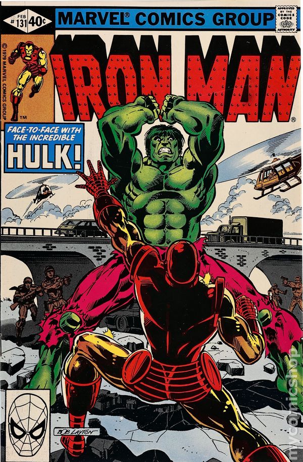 Direct Edition. "Hulk is Where the Heart is!" Part 1 of 3. Guest-starring the Hulk and Scott Lang (aka Ant-Man). Plot by David Michelinie and Bob Layton. Script by David Michelinie. Art by Jerry Bingham (breakdowns) and Bob Layton (finishes). Cover by Bob Layton. After Iron Man confronts the Incredible Hulk on the Long Island Expressway, the man-brute reverts back to Bruce Banner and begs the armored avenger to end his life! But Shell-Head will not do that! Instead Tony Stark and Scott Lang pool their collective genius to develop a cure for the Hulk! What follows next is a most unexpected result! Cameo appearances by Bethany Cabe and Dr. Erica Sondheim. (Note: The letters page includes a letter from comics writer Mary Jo Duffy.) 32 pages. Cover price $0.40.