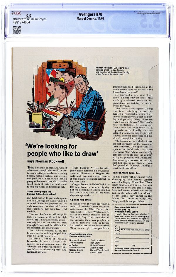 Tags: Marvel Legacy Numbering: Avengers (part 70), AvengersAvengers (1963 1st Series) 70 CGC 5.5