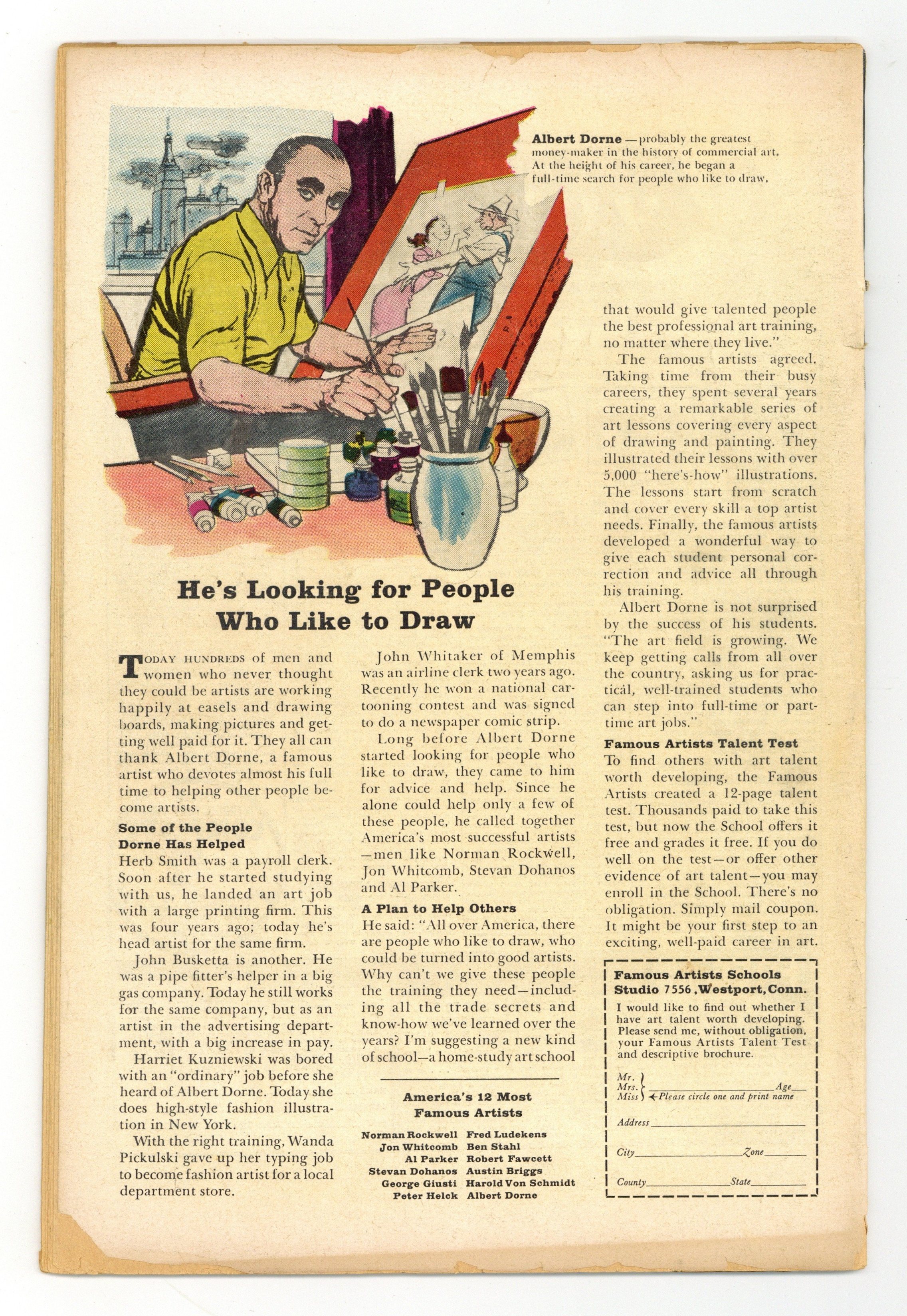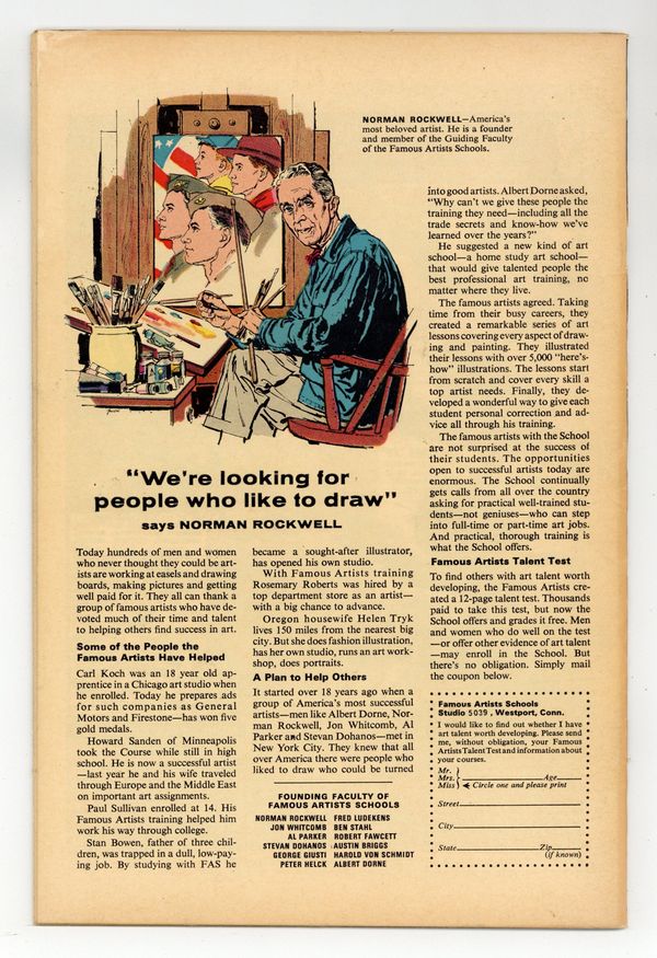 Ends Mar 16 7:48 PM CST Bid History 7 bids Current Bid $48 Your Secret Max Bid If you'd like to bid, please log in or register. Cover pencils by Bob Powell, inks by Wally Wood. The Organizer returns with Ape Man, Bird Man, Cat Man, and Frog Man in A Time To Unmask!, script by Stan Lee, pencils by Bob Powell, inks by Wally Wood; The case of the Organizer and the Reform Party is wrapped up as mysteries are all solved; Matt takes a leave of absence from the law firm. 36 pgs. Cover price $0.12. Cover price $0.12.