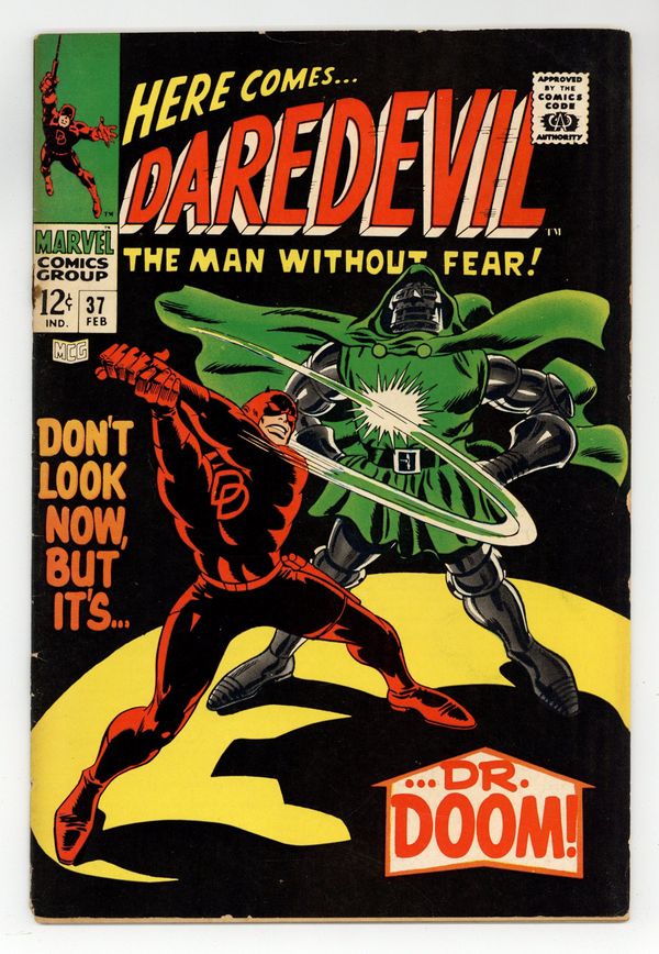 Starts Mar 23 Cover pencils by Gene Colan, inks by Frank Giacoia. Don't Look Now, But It's Dr. Doom, script by Stan Lee, pencils by Gene Colan, inks by John Tartaglione; Doom captures Daredevil and switches bodies with our hero; cameo flashback featuring Mr. Fantastic, Invisible Girl, Human Torch, and Galactus. 36 pgs. Cover price $0.12. Cover price $0.12.