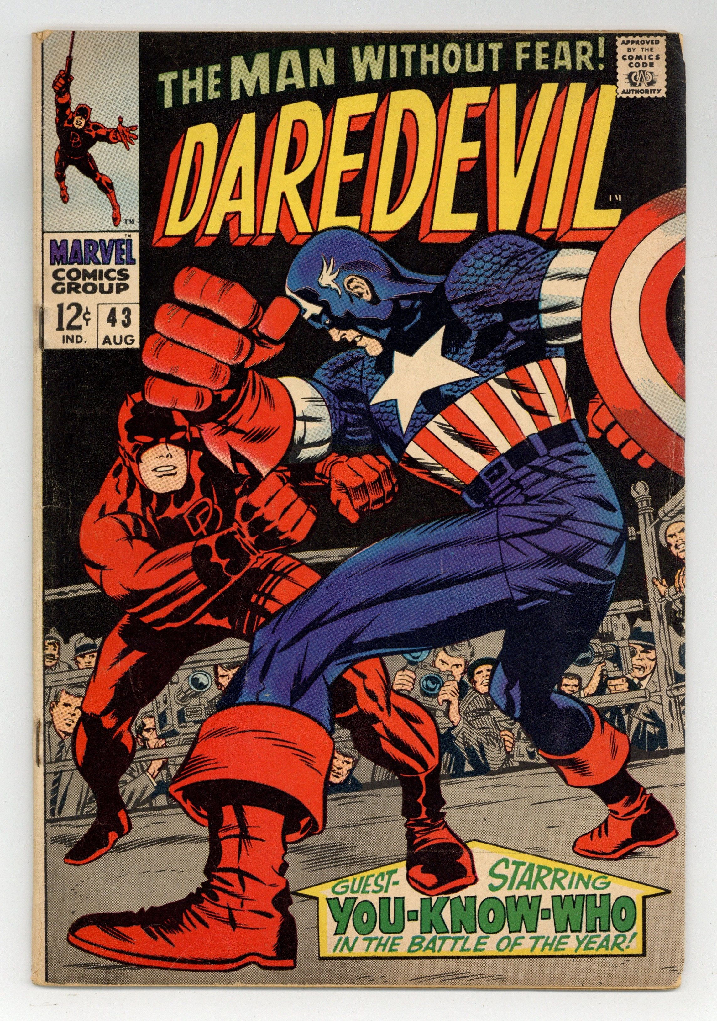 Starts Mar 23 Cover pencils by Jack Kirby, inks by Joe Sinnott. In Combat With Captain America!, script by Stan Lee, pencils by Gene Colan, inks by Vince Colletta; Busted up over his breakup with Karen, DD takes it out on Captain America during a charity event. 36 pgs; Daredevil's origin retold. 36 pgs. Cover price $0.12. Cover price $0.12.