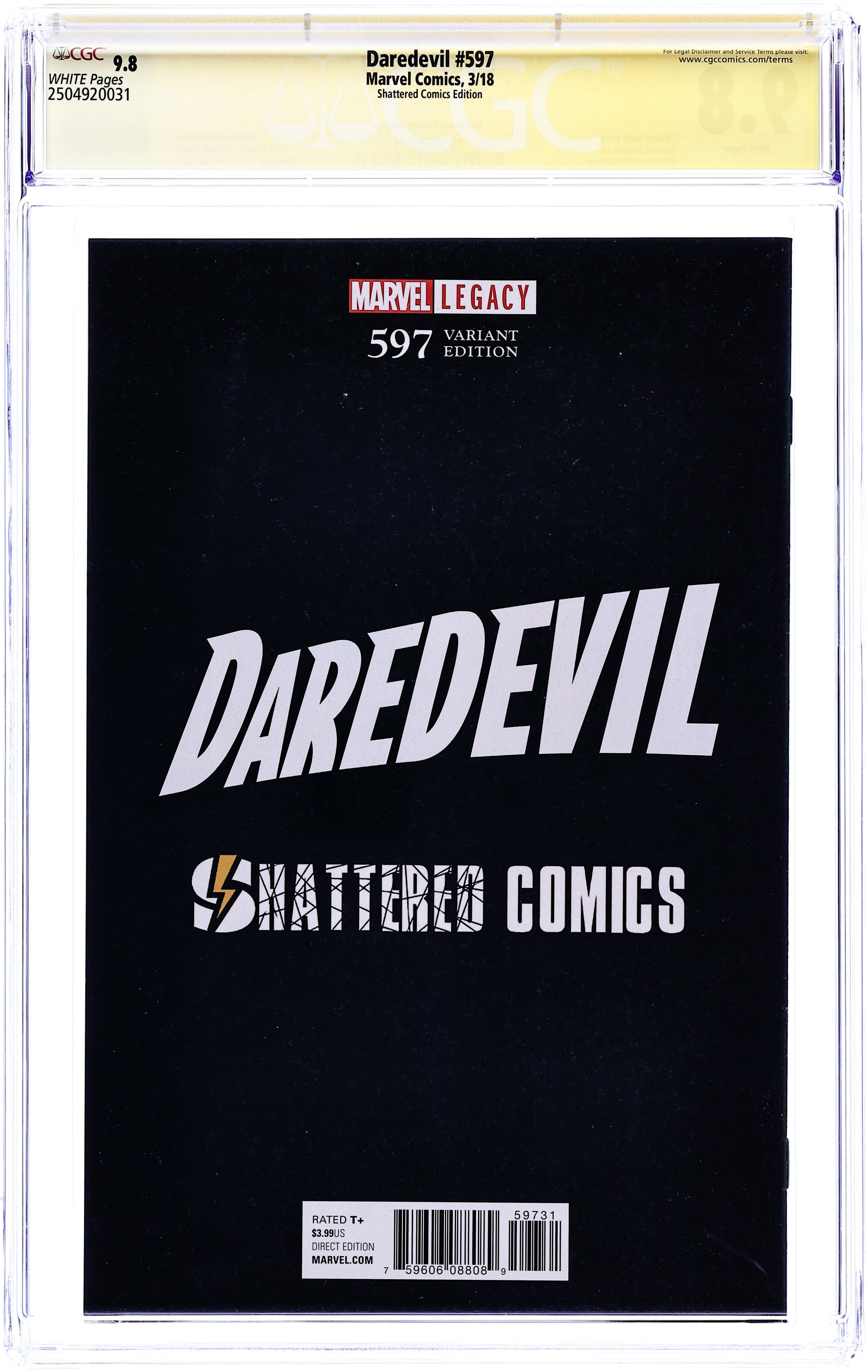 Tags: Marvel Legacy Numbering: Daredevil (part 597), DaredevilDaredevil (2017 6th Series) 597SHATTERED CGC 9.8 SS Miller DiMassi Shattered Variant