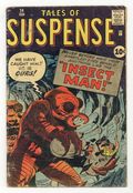 Starts Mar 16 Cover pencils by Jack Kirby, inks by Dick Ayers. "I was Trapped in the Chamber of Fear!", pencils by Jack Kirby, inks by Dick Ayers; A man tries to pitch to Stan Lee the story of a blackmailer who becomes trapped within a mystic ruby as an agent of Fate to direct recently departed souls to their destination; Stan rejects the story as too outlandish even for Tales of Suspense and the man leaves the office. "Bird Talk" text story. "The Mystery of the Tax Collector from Space!", pencils by Jack Kirby, inks by Dick Ayers; A failed actor finds a spaceship with a dead pilot and uses it in an attempt to con the authorities; The ship is actually a decoy, and is retrieved by the aliens to get a human specimen for their zoo. "The Secret of the Mirage," art by Don Heck; A doctor goes to the Middle East to treat the local people; He is attacked by bandits for curing the local sheikh, and chased into a desert mirage, which takes him to a utopian world. "Where Is the Wommelly?", script by Stan Lee (signed), art by Steve Ditko; An alien armada attempts to conquer Earth, but is driven off; One of the ships is damaged and forced to land on Earth, its pilot an outcast forever on the planet; The military is convinced they will capture the alien at any moment since it must be of monstrous appearance. 36 pages, full color. Cover price $0.12.