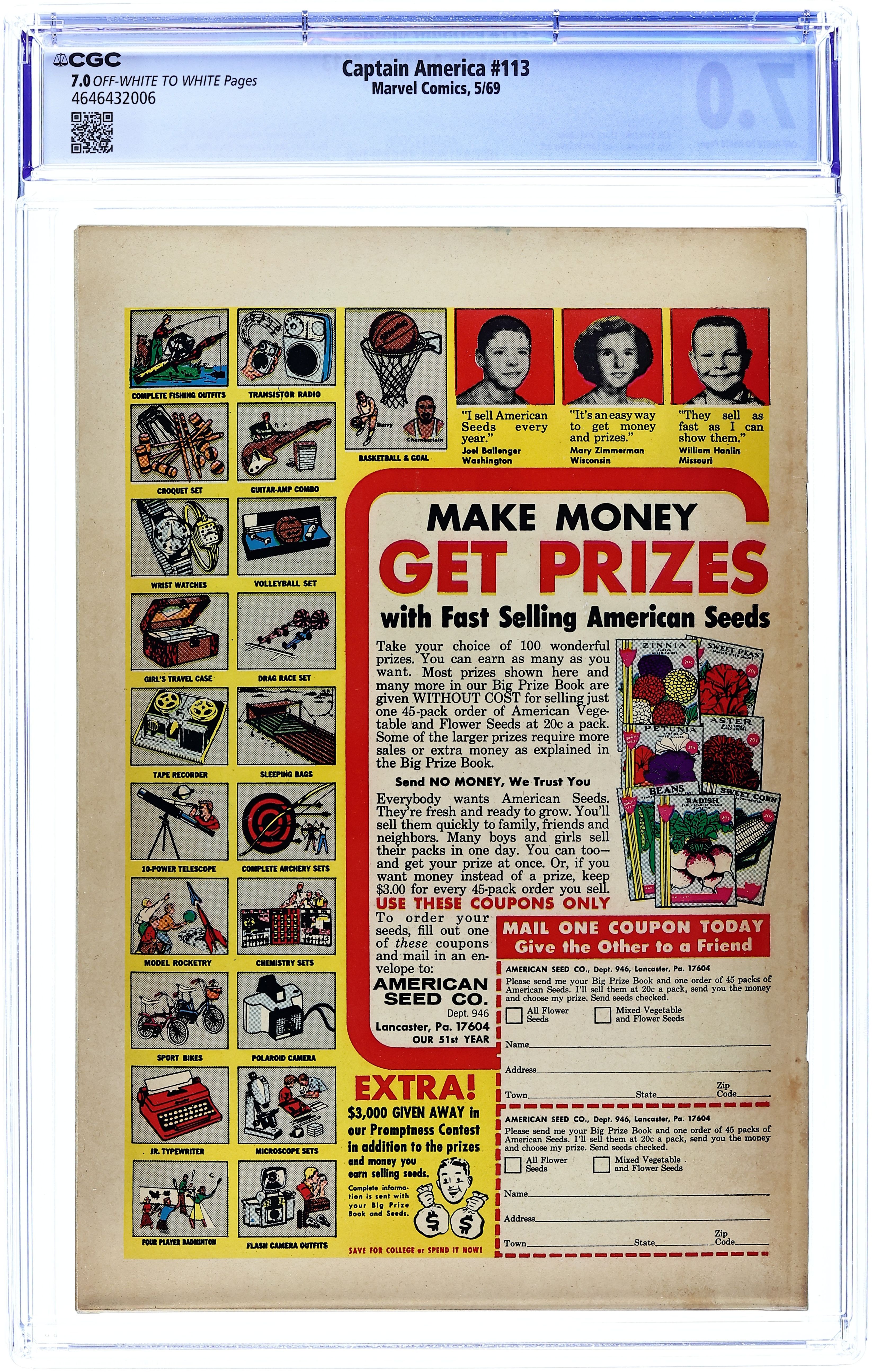 Tags: Marvel Legacy Numbering: Captain America (part 113), Captain AmericaCaptain America (1968 1st Series) 113 CGC 7.0