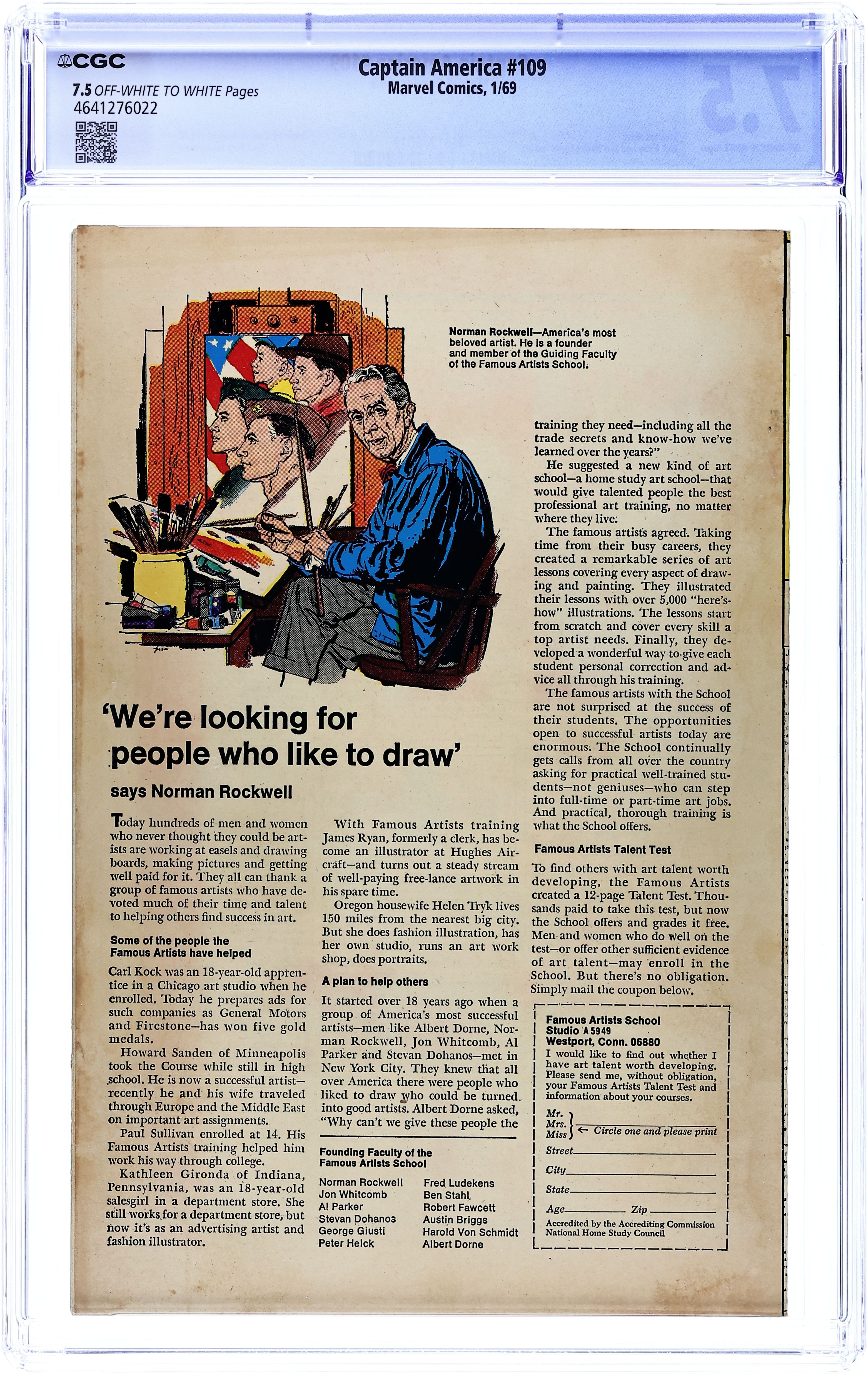 Tags: Marvel Legacy Numbering: Captain America (part 109), Captain AmericaCaptain America (1968 1st Series) 109 CGC 7.5