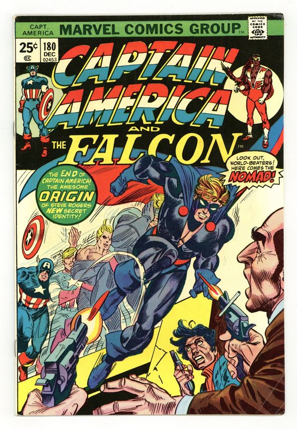 Ends Dec 8 7:48 PM CST Bid History 6 bids Current Bid $21 Your Secret Max Bid If you'd like to bid, please log in or register. First appearance of Nomad (aka Steve Rogers) in "The Coming of the Nomad!" Part 1 of 3. Script by Steve Englehart. Pencils by Sal Buscema. Inks by Vince Colletta. Cover by Gil Kane, Mike Esposito, and Frank Giacoia. Thanks to a suggestion from Hawkeye, Steve Rogers decides to become a superhero again. But he wants to adopt a different identity. So, to that end, Steve travels to the Carter estate to design a new costume and pick a new name. Say hello to the Nomad! Meanwhile elsewhere in Virginia, Madame Hydra returns to the terrorist scene after a long absence. Her first act is killing the original Viper, so she can take his name for herself! Then she assumes command of the Serpent Squad to advance her brand of nihilism. Hours later in Washington D.C., the former Captain America and the former Madame Hydra cross paths...and put their new noms de guerre to the test! Nomad vs. the Serpent Squad! What a start for the new hero! First appearance of Hugh Jones. First mention of the Roxxon Oil Corporation. Cameo appearances by the Falcon, Roscoe Simons, Sharon Carter, Harrison Carter, and Warlord Krang. (Notes: Madame Hydra previously appeared in Captain America 113. The cover shows Nomad's color scheme as blue & red; however, it's actually blue & yellow inside. The letters page contains Marvel Value Stamp series A #61 The Red Ghost by Jack Kirby. This issue was reprinted in 2006 in the trade paperback: Captain America and the Falcon Nomad. The TPB collects issues 177 thru 186.) 36 pages. Cover price $0.25.