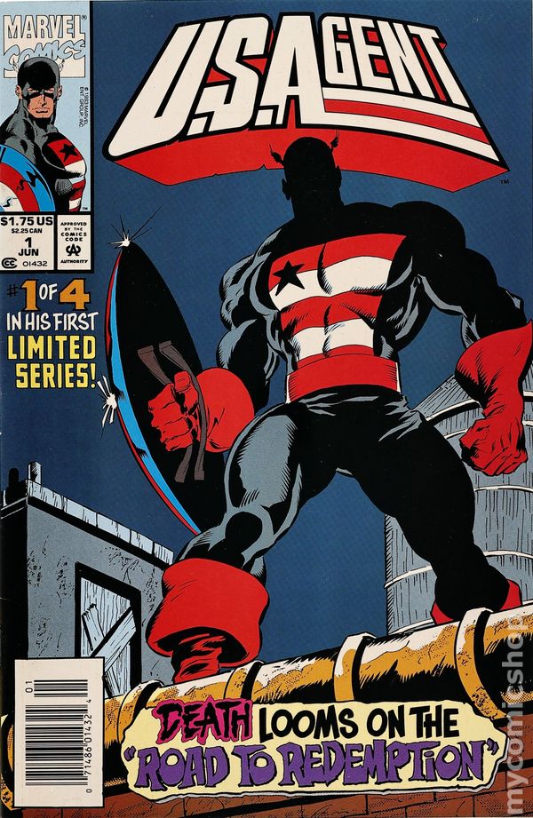 Direct Edition. Scourge, the super-villain mass-murderer, has returned with a vengeance and there is only one thing standing in his way, Johnny Walker, the U.S. Agent. Story by Mark Gruenwald. Art by M.C. Wyman and Keith Williams. Follow John Walker, the one time successor to Captain America, on his first solo-adventure. Origin revealed in flashback. 32 pages. Cover price $1.75.