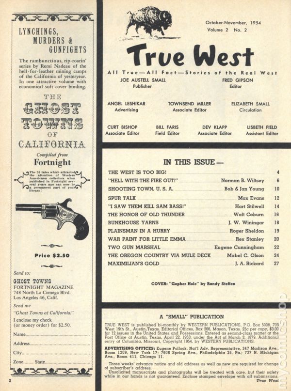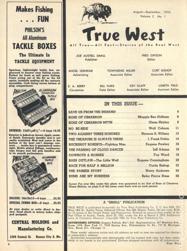 Issue #10. July-August 1955. Magazine with articles and history relating to the American West. 8.5" x 11". 52 pages. Black and white. Cover price $0.25.