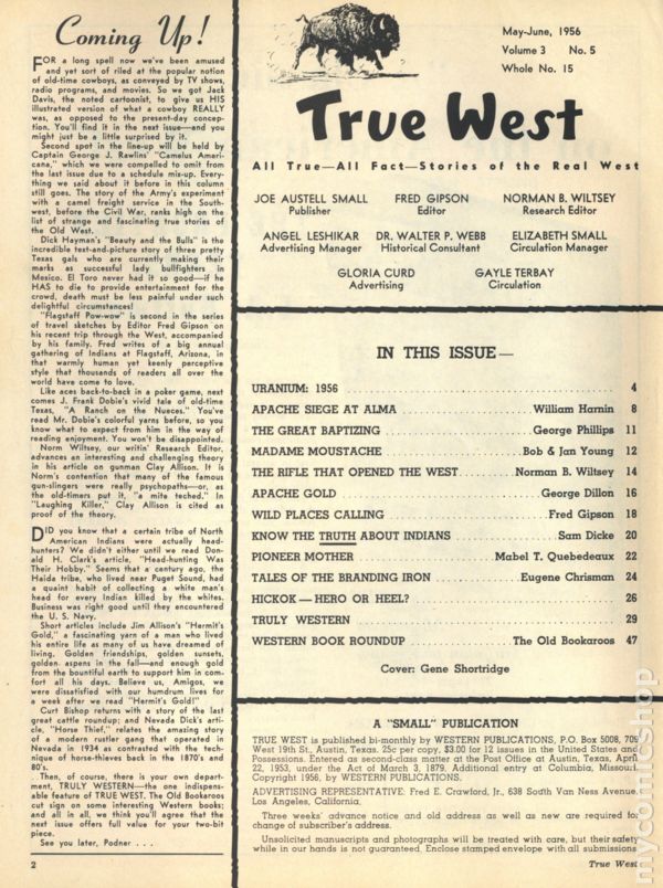 Issue #15. May-June 1956. Magazine with articles and history relating to the American West. 8.5" x 11". 48 pages. Black and white. Cover price $0.25.