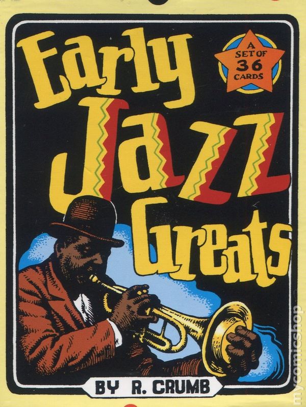 1st printing. Set of 36 cards featuring "Early Jazz Greats" illustrated by R. Crumb. 3" x 4", Box of 36 color illustrated trading cards.