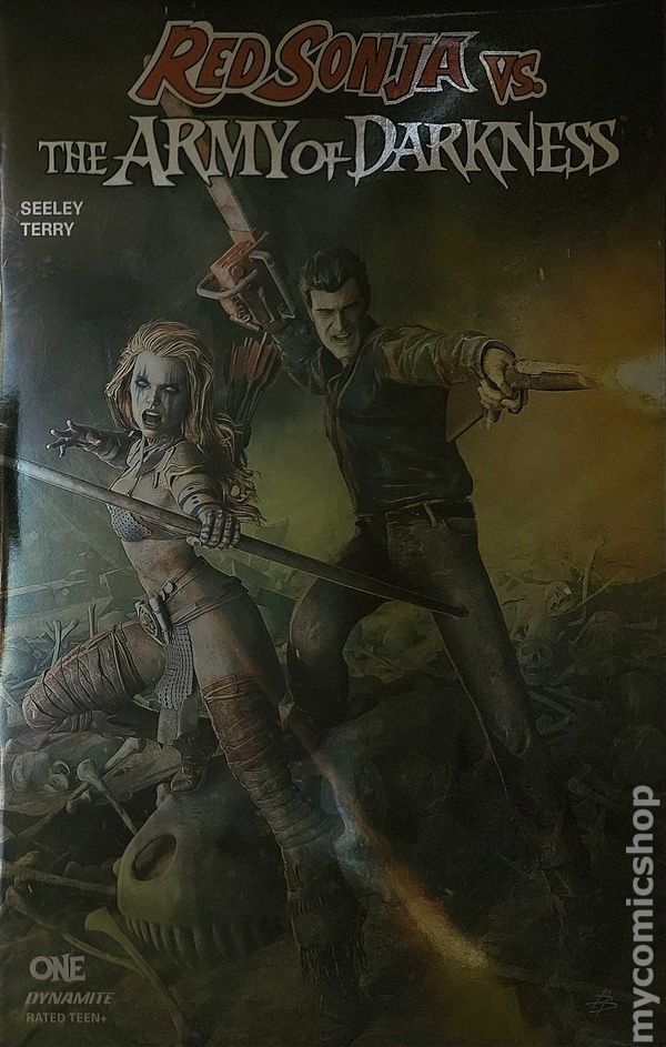 Written by Tim Seeley. Art by Jim Terry. Cover by Bjorn Barends. 'Demon bitches are my specialty.' -Ash An all-new mini-series featuring everyone's favorite, Deadite-slaying, bumbling hero - Ashely J. Williams as he sends himself (once again) back in time, to the wrong time, only this time, THIS TIME he faces Red Sonja - She-Devil with a Sword! And lurking in the shadows? Kulan Gath himself and if the most dread Wizard of the Hyborian Age gets his hands on the Necronomicon? Well sh*t, that's ain't gonna be good! 'What I've like to do here is use the Army of Darkenss dark magic stuff and infuse it into Sonja's Hyborian age, so we can do a modernized take on those earliest Thomas/Jones/Throne/Buscema comics...gritty, dark sword and sorcery, full of weird monsters and grim morality talesthe difference being that Sonja is now weighed down by Ash who is, as always, kind of a moron who ruins thingsis totally enamored with Sonja.' Seeley Featuring art by Jim Terry, our series launches with a lead cover by the red-hot Mark Spears along with Tim Seeley, Bjorn Barends and the Dynamite debut of Nikkol Jelenic! Tim [Seeley] is one of those 'slash' people…a writer-slash-artist. He has drawn a number of different comic book series including G.I JOE, HALLOWEEN, WILDCATS and EXSANGUINE. His writing work includes NY TIMES bestselling HACK/SLASH, NIGHTWING, BATMAN ETERNAL, MONEY SHOT and the critically acclaimed REVIVAL. He has also done consultation work for Cacao Barry, artist Hebru Brantley and Dreamworks Animation, and is an adjunct professor at Columbia College Chicago. He resides in Chicago, Illinois with his wife and daughter, and works at home where he is never far from his 80s action figure collection. 32 pages, full color. Rated T+ Cover price $4.99.
