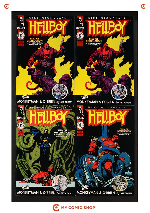 Issues 1, 1, 2, & 3 of Hellboy Seed of Destruction (1994). Most will grade in the VF- to FN range.