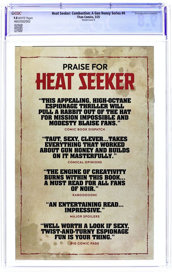 Published Feb 2025 by Titan Comics.Heat Seeker Combustion A Gun Honey Series (2024 Titan) 3H CGC 9.8