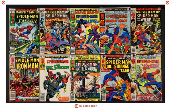 Issues 120, 123, 127, 136, 139, 142, 143, 146, 147, and 149 of Marvel Team-Up (1972 1st Series). Most will grade in the VF to FN range.