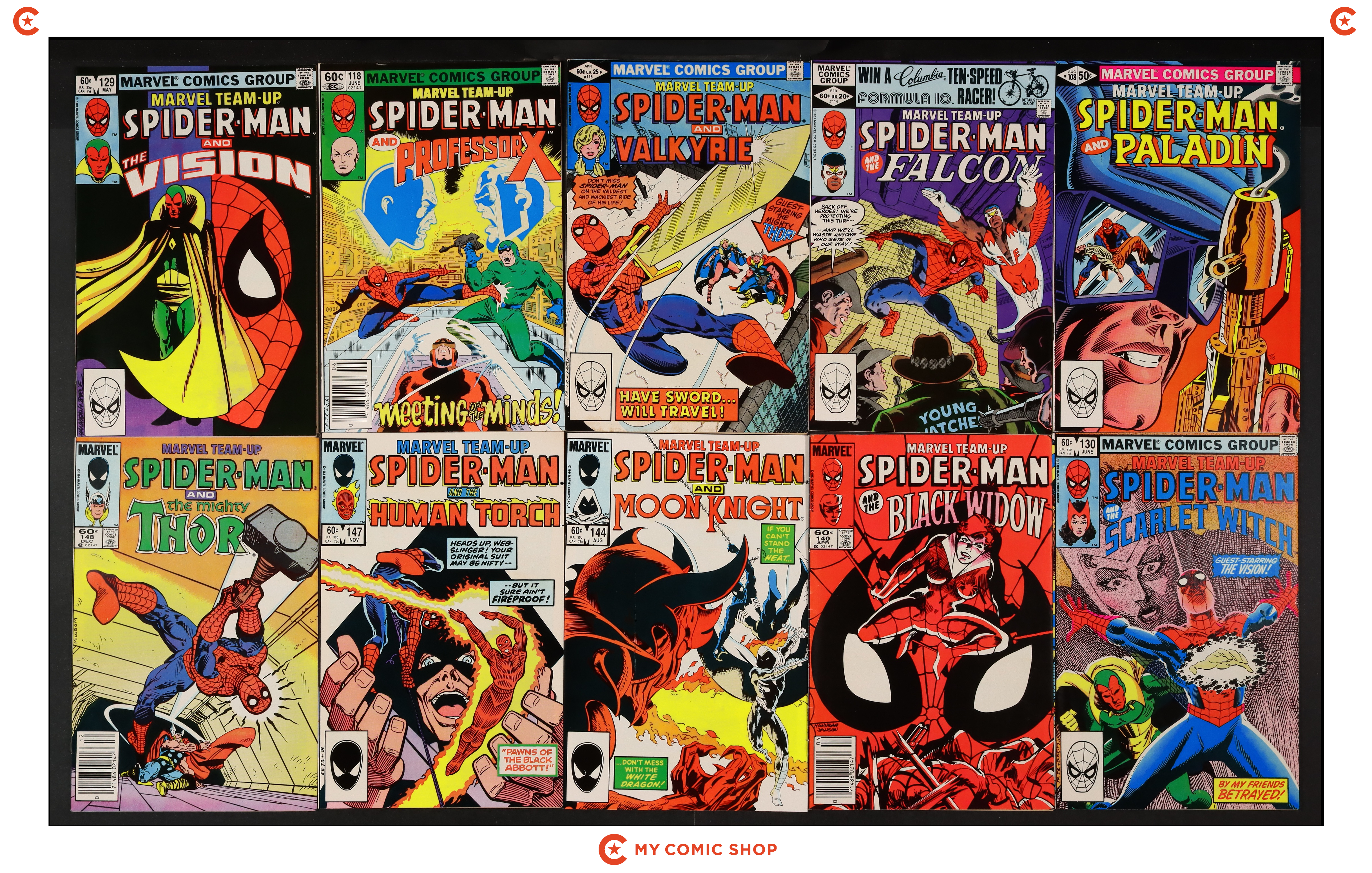 Issues 56 of Marvel Team-Up (1972 1st Series) Whitman Variants; and 80, 82, 84, 85, 87, 88, 90, 98, 99, 112, and 133 of Marvel Team-Up (1972 1st Series). Most will grade in the FN to VG range with #56 grading GD.