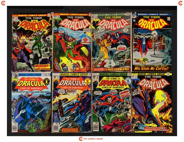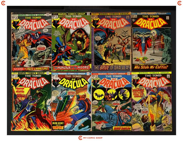 Issues 2, 8, 12, 22, 27, 59, 60, 68 of Tomb of Dracula (1972 1st Series). Most will grade in the FR to GD range.