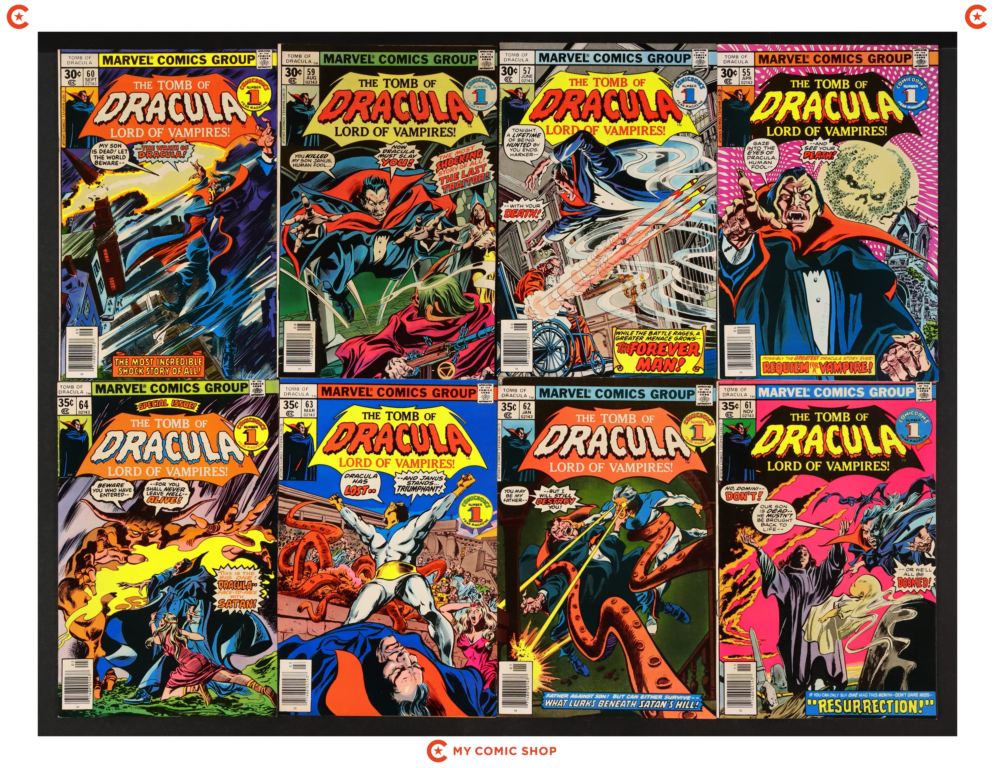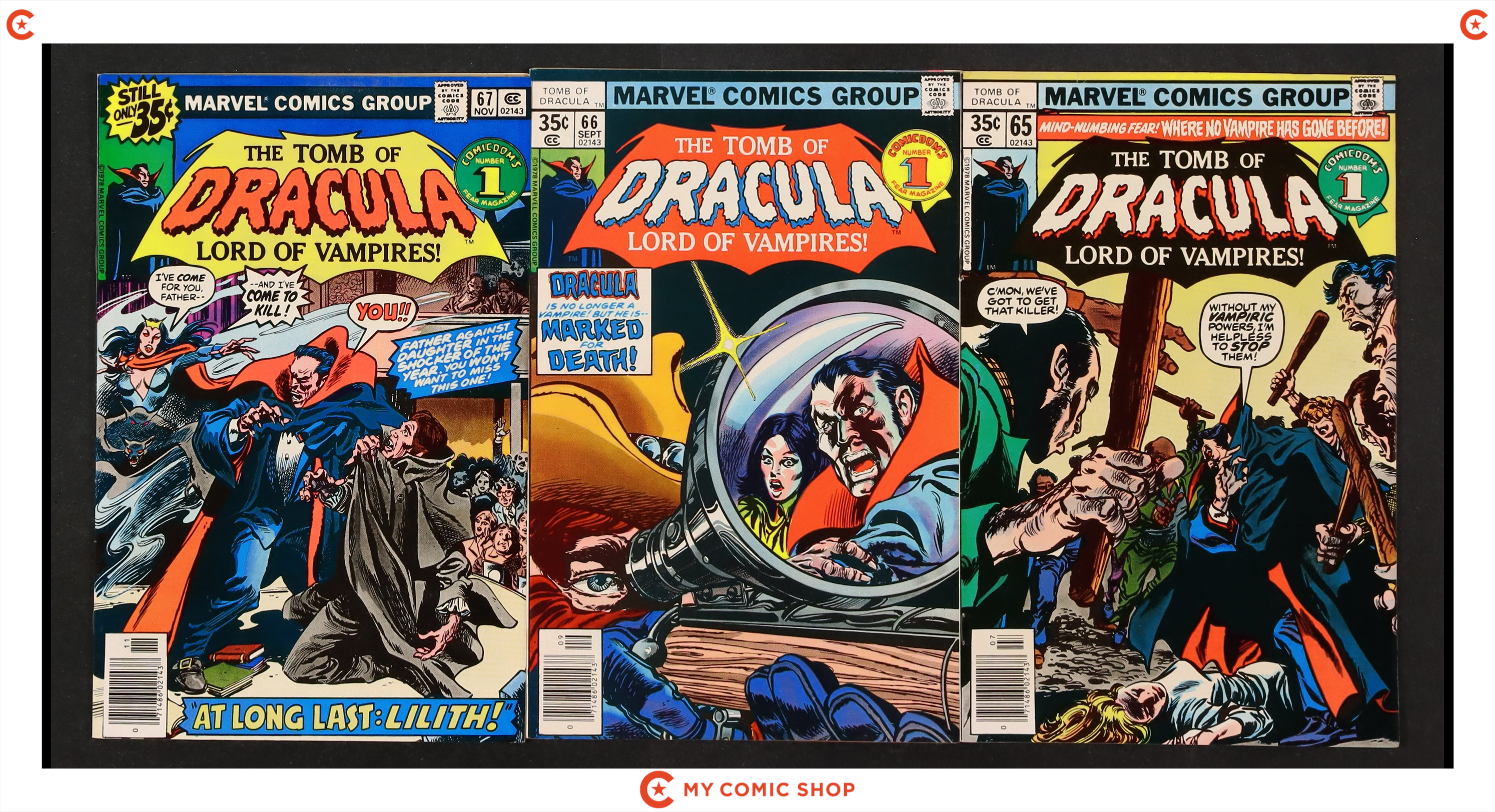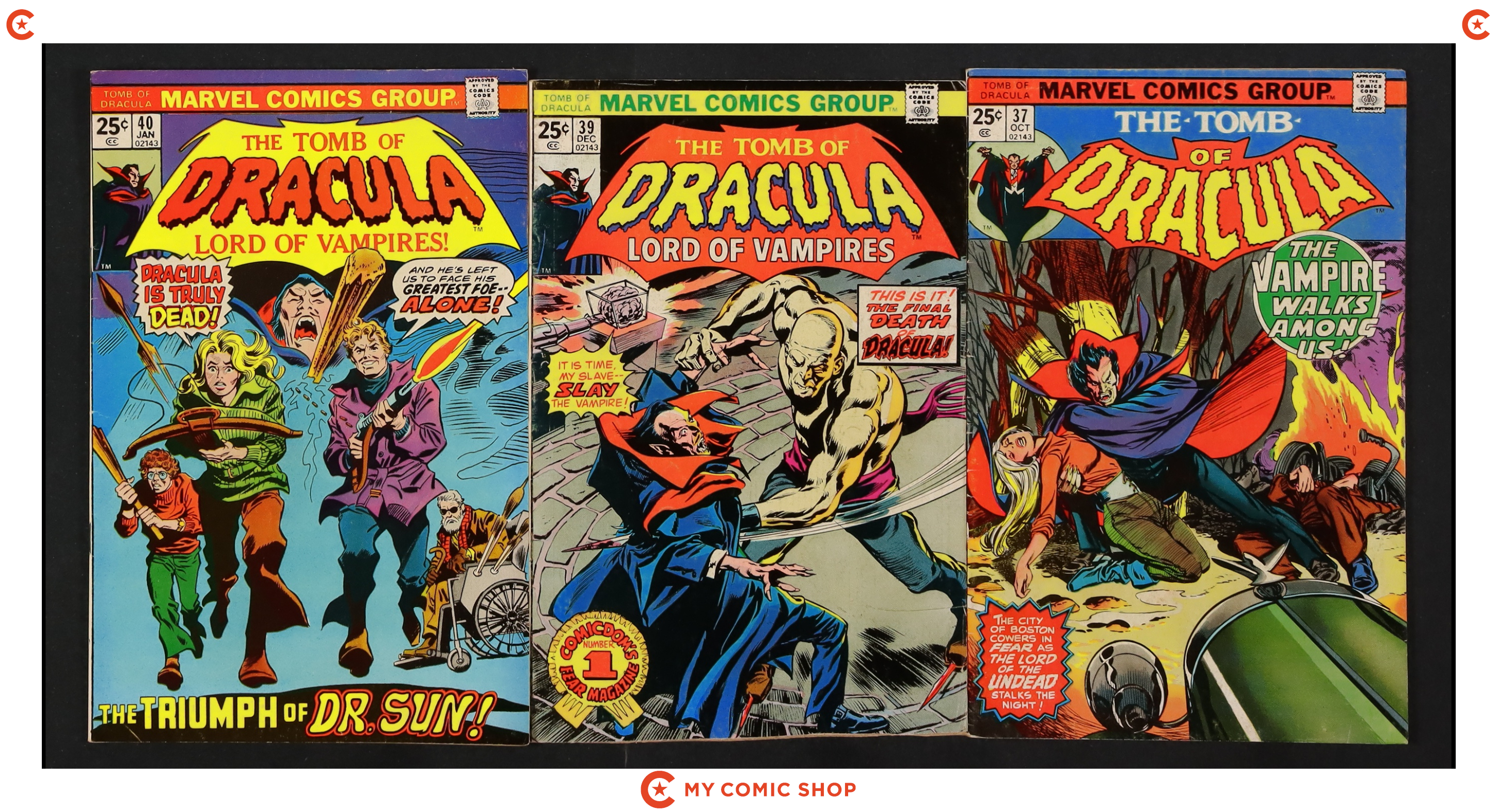 Issues 31-39 of Tomb of Dracula (1972 1st Series). Most will grade in the FN range.