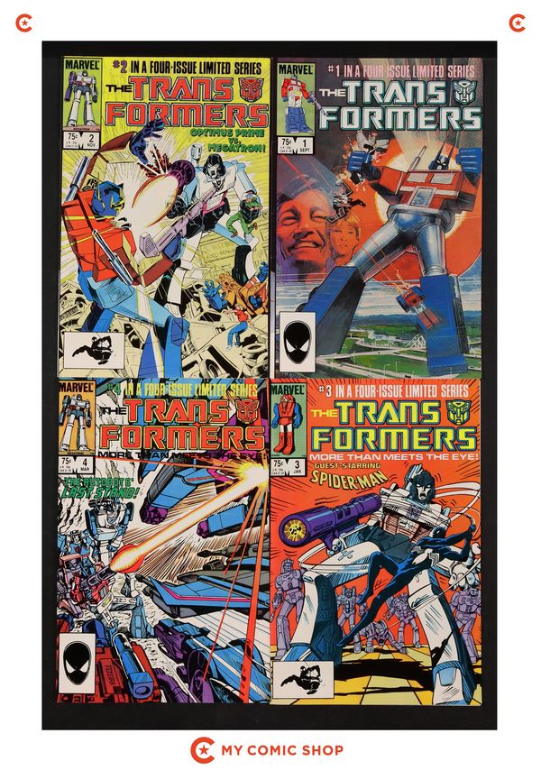Issues 1-4 of Transformers (1984 Marvel). Most will grade in the FN/VF range.