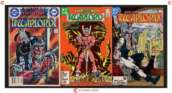 Issues 28, 29, 31, 32, 34, 36, 37, 49, 55, 61 of Warlord (1976 1st Series DC). Most will grade in the VG to FN/VF range.